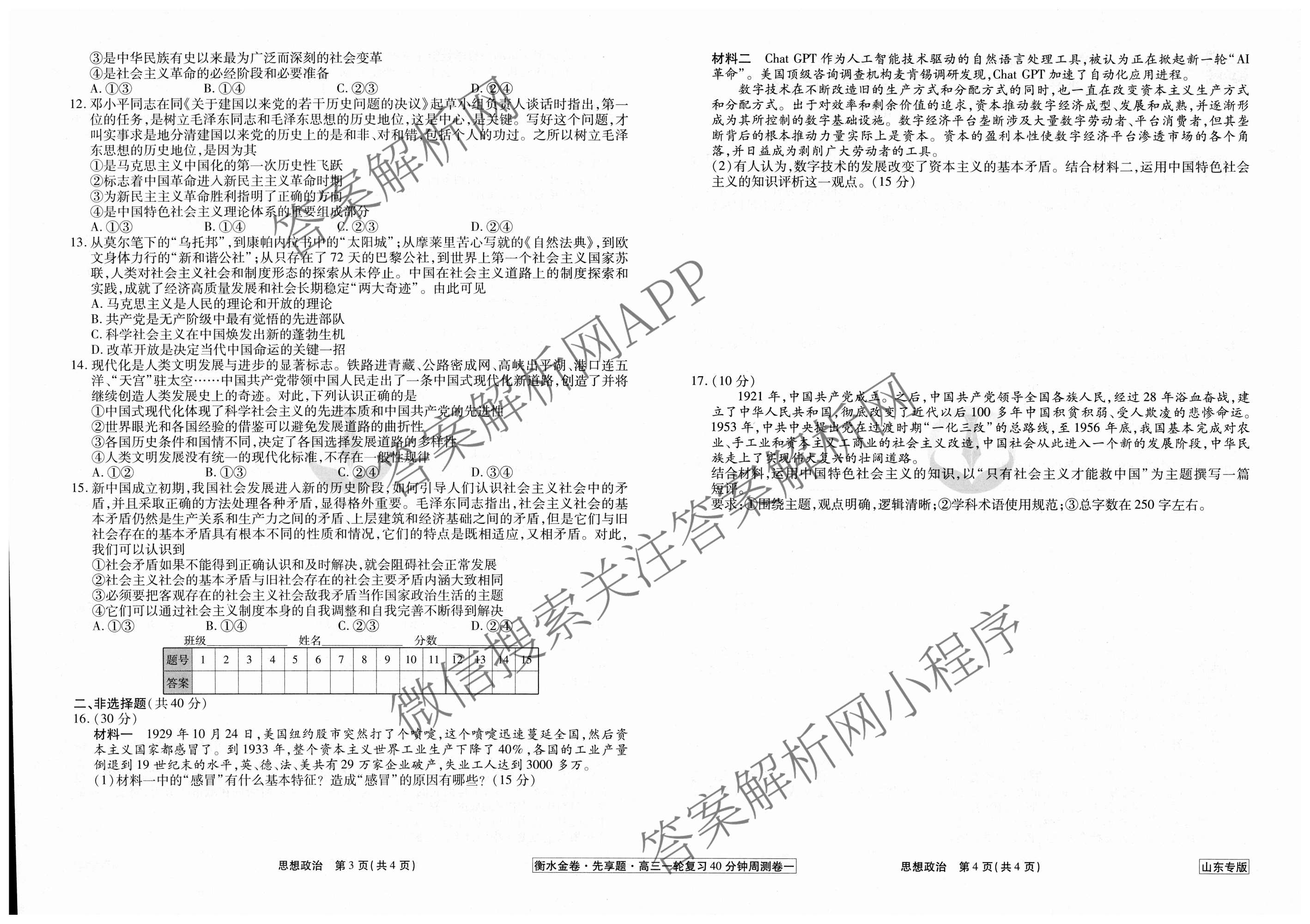 2024-2025衡水金卷先享题·高三一轮复习40分钟周测卷·政治(山东专版)(一)1试题,目前衡水金卷先享题答案网已经汇总了2024-2025衡水金卷先享题·高三一轮复习40分钟周测卷·政治(山东专版)(一)1试题的各科答案和试卷,获取更多衡水金卷先享题答案解析,请在关注本站。