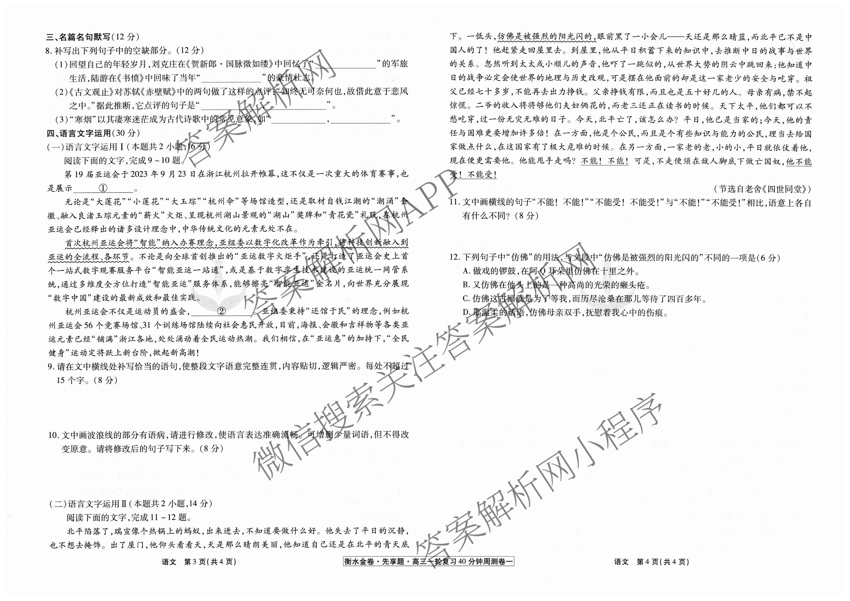 2024-2025衡水金卷先享题·高三一轮复习40分钟周测卷·语文(一)1试题,目前衡水金卷先享题答案网已经汇总了2024-2025衡水金卷先享题·高三一轮复习40分钟周测卷·语文(一)1试题的各科答案和试卷,获取更多衡水金卷先享题答案解析,请在关注本站。