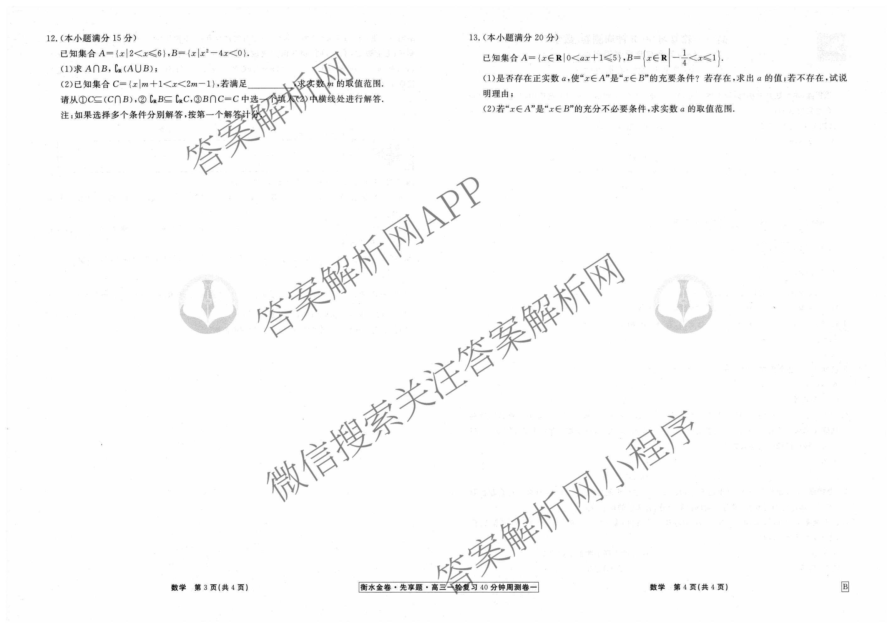 - 2024~2025[高三]衡水金卷先享题一轮复习40分钟周测卷数学(B)(一)1答案
