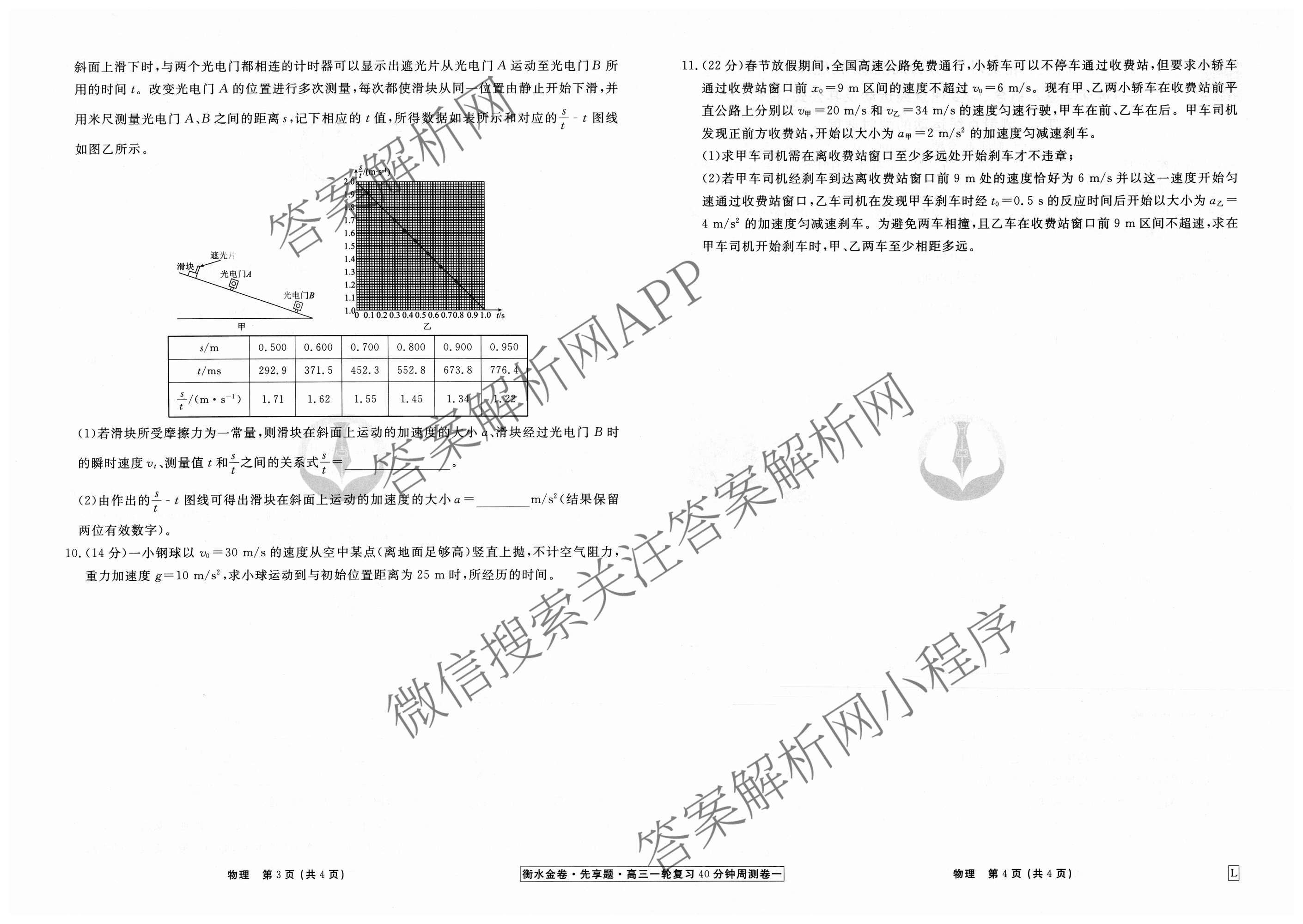 - 2024-2025[衡水金卷先享题][高三]一轮复习40分钟周测卷物理(L)(一)1答案