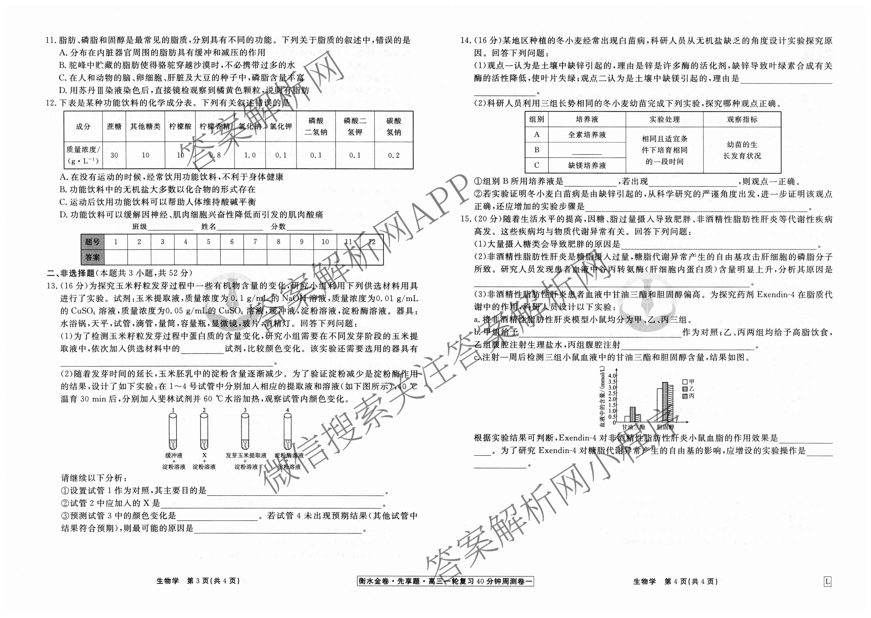 2024-2025衡水金卷先享题·高三一轮复习40分钟周测卷·生物(L)(一)1试题,目前衡水金卷先享题答案网已经汇总了2024-2025衡水金卷先享题·高三一轮复习40分钟周测卷·生物(L)(一)1试题的各科答案和试卷,获取更多衡水金卷先享题答案解析,请在关注本站。