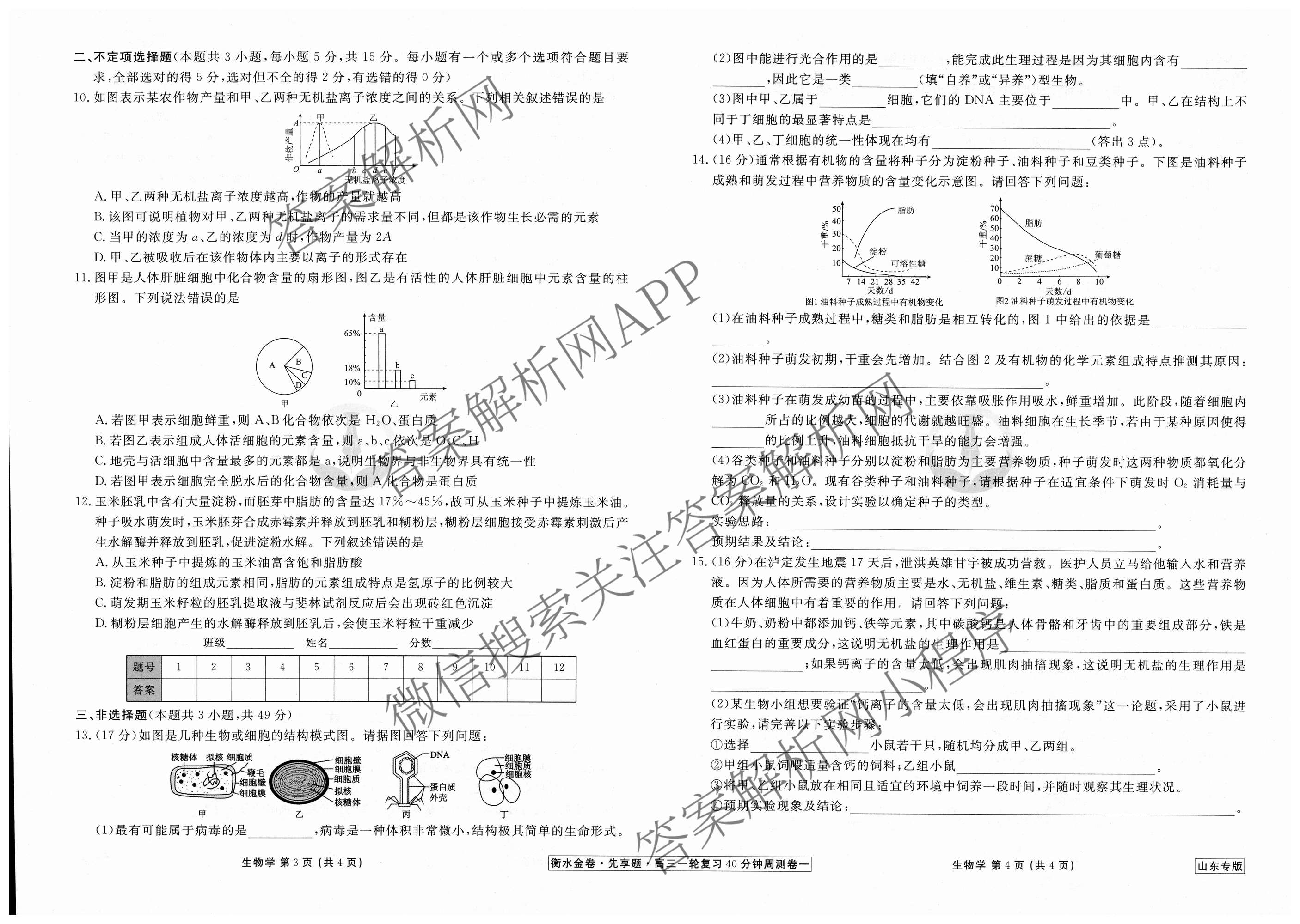 2024-2025衡水金卷先享题·高三一轮复习40分钟周测卷·生物(山东专版)(一)1试题,目前衡水金卷先享题答案网已经汇总了2024-2025衡水金卷先享题·高三一轮复习40分钟周测卷·生物(山东专版)(一)1试题的各科答案和试卷,获取更多衡水金卷先享题答案解析,请在关注本站。