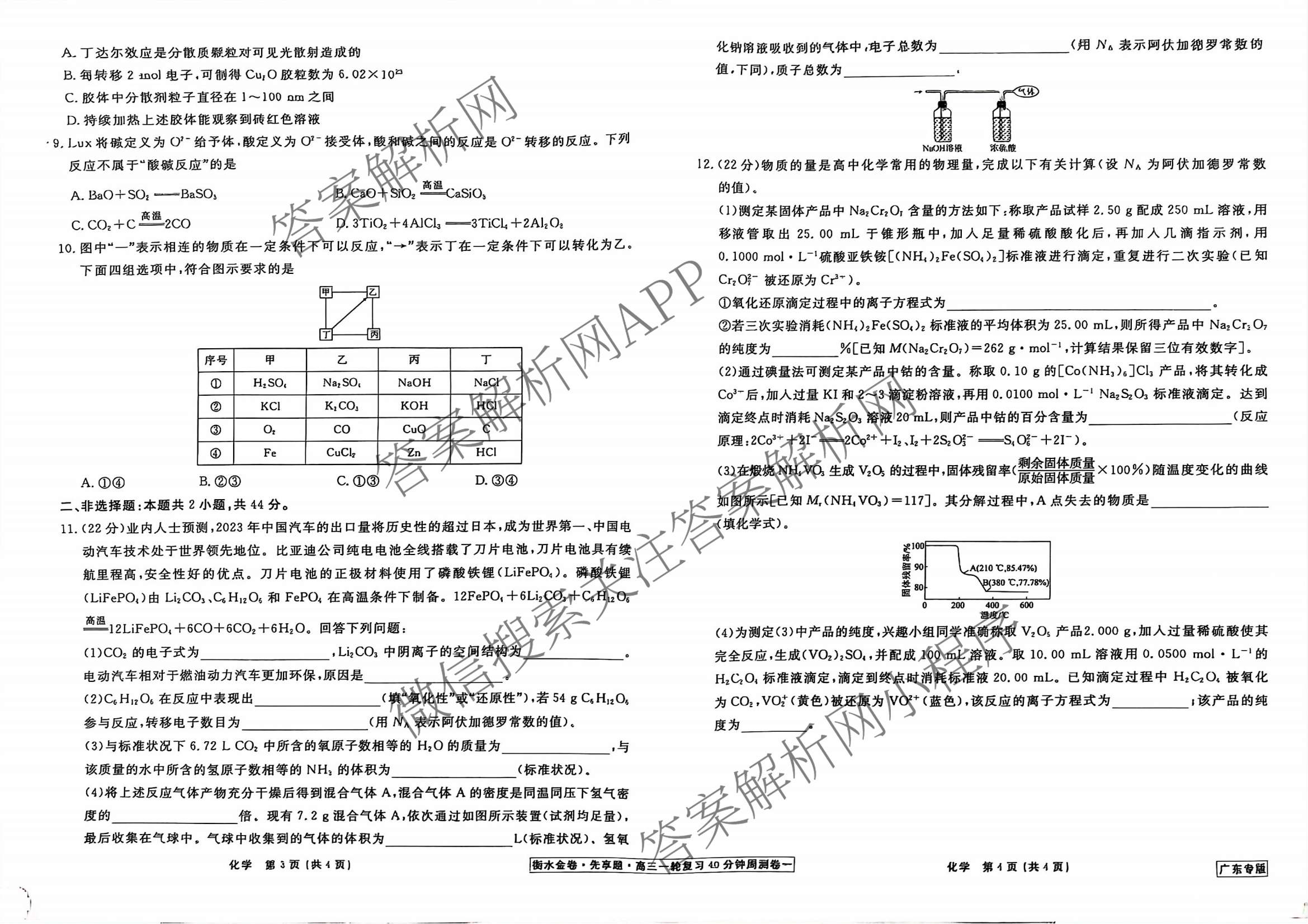 2024-2025衡水金卷先享题·高三一轮复习40分钟周测卷·化学(广东专版)(一)1试题,目前衡水金卷先享题答案网已经汇总了2024-2025衡水金卷先享题·高三一轮复习40分钟周测卷·化学(广东专版)(一)1试题的各科答案和试卷,获取更多衡水金卷先享题答案解析,请在关注本站。