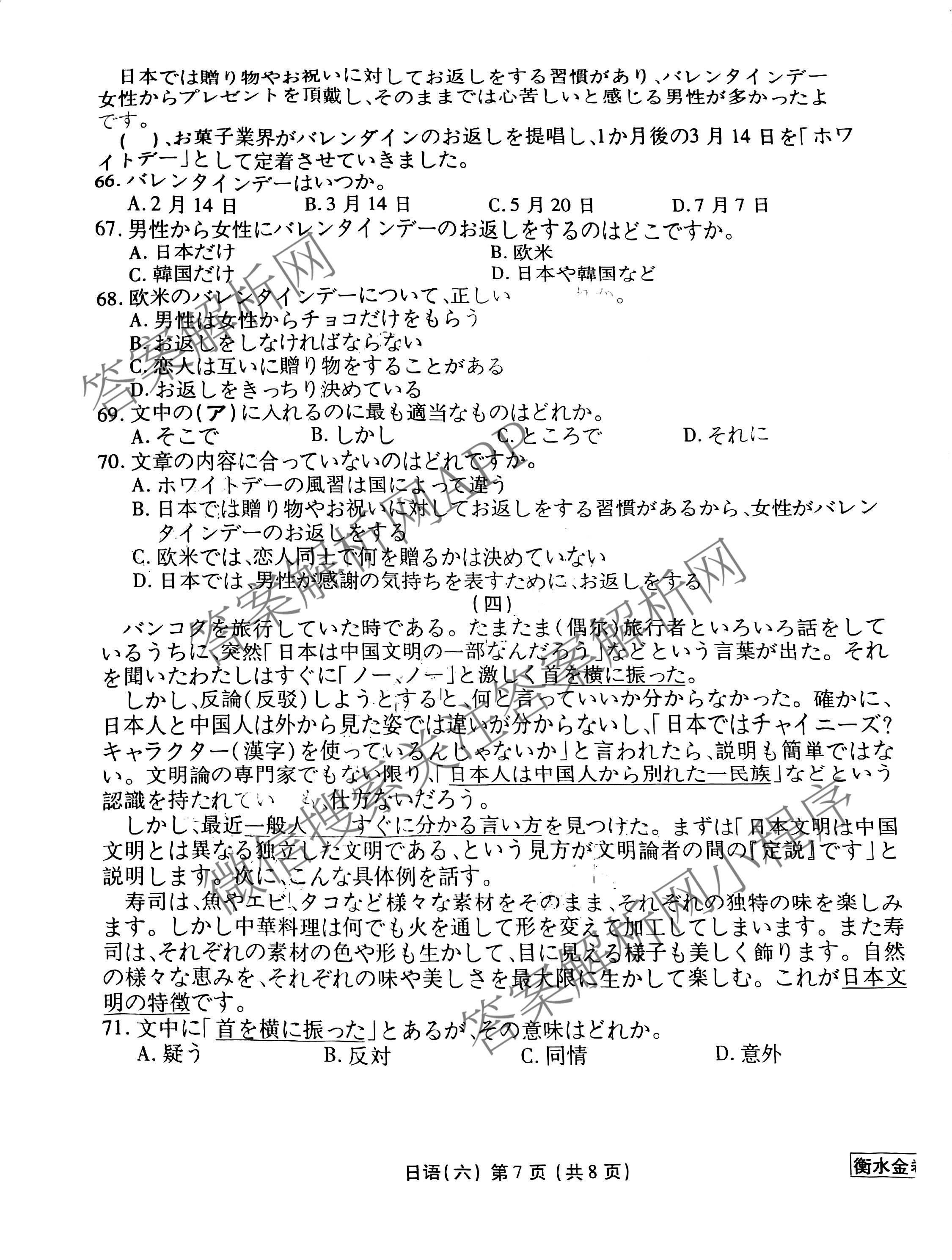 (高三)[衡水金卷先享题]·调研卷 2024年普通高等学校招生全国统一考试模拟试题(六)6日语试题