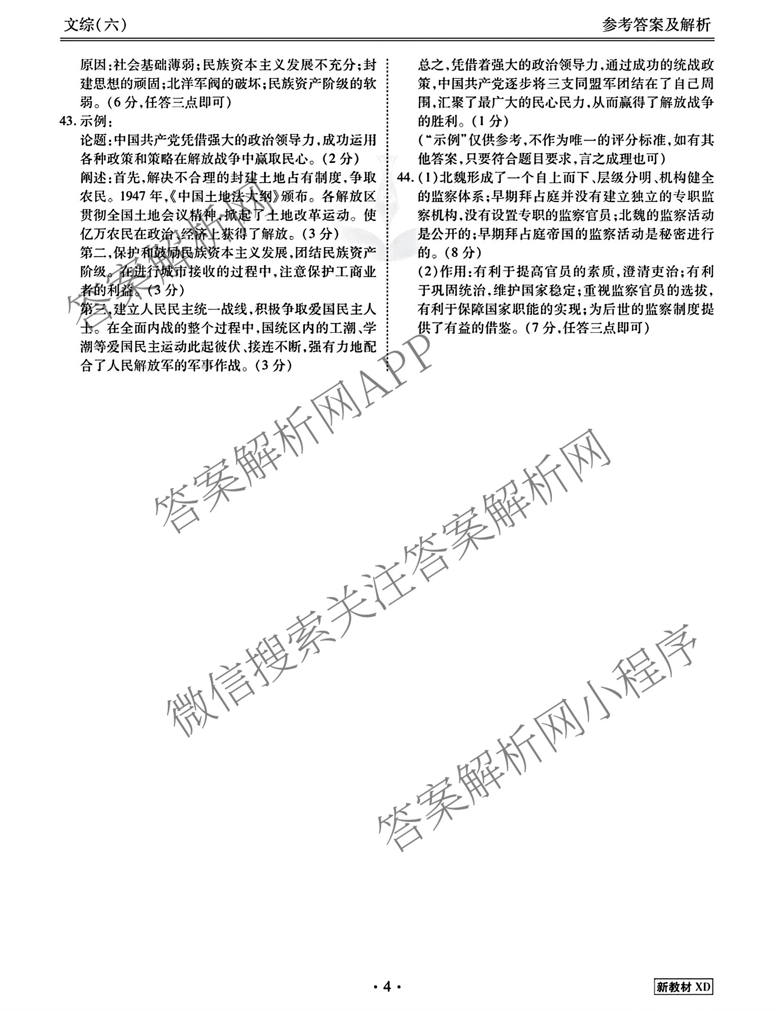 高三(衡水金卷先享题)·调研卷 2024年普通高等学校招生全国统一考试模拟(六)6文综(新教材 XD)答案