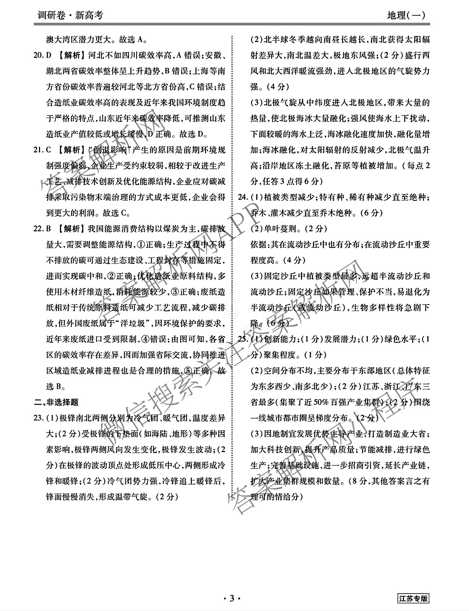 高三[衡水金卷先享题]·调研卷 2024年普通高中学业水平选择性考试模拟试题(一)1地理(江苏专版)答案