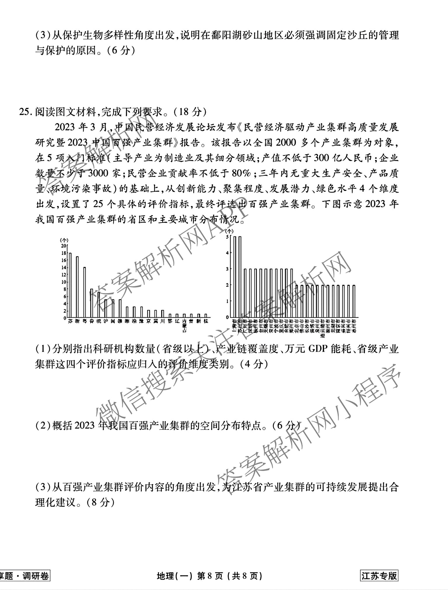 - [高三][衡水金卷先享题]调研卷 2024年普通高中学业水平选择性考试模拟试题(一)1地理(江苏专版)试题
