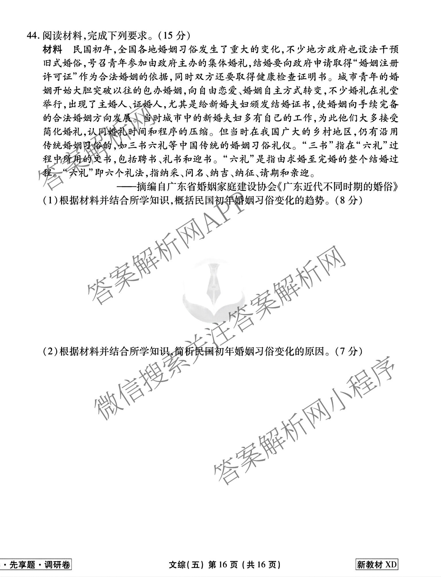 衡水金卷先享题·调研卷 2024年普通高等学校招生全国统一考试模拟(五)5文综(新教材 XD)试题,目前衡水金卷先享题答案网已经汇总了衡水金卷先享题·调研卷 2024年普通高等学校招生全国统一考试模拟(五)5文综(新教材 XD)试题的各科答案和试卷,获取更多衡水金卷先享题答案解析,请在关注本站。