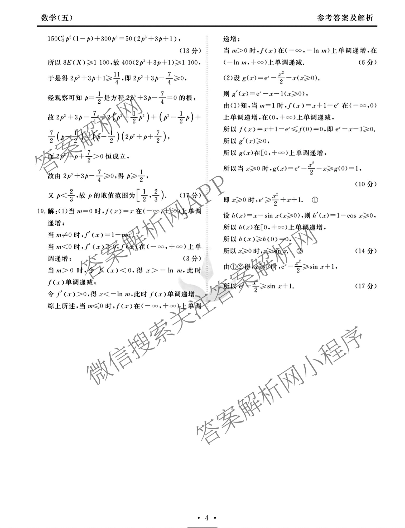高三[衡水金卷先享题]·调研卷2024年普通高等学校招生全国统一考试模拟试题(五)5数学(XD·C)答案
