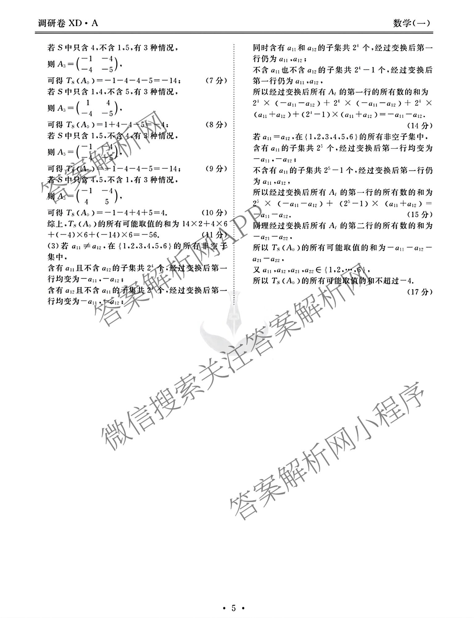 (高三)(衡水金卷先享题)调研卷2024年普通高等学校招生全国统一考试模拟试题(一)1数学(XDA)答案