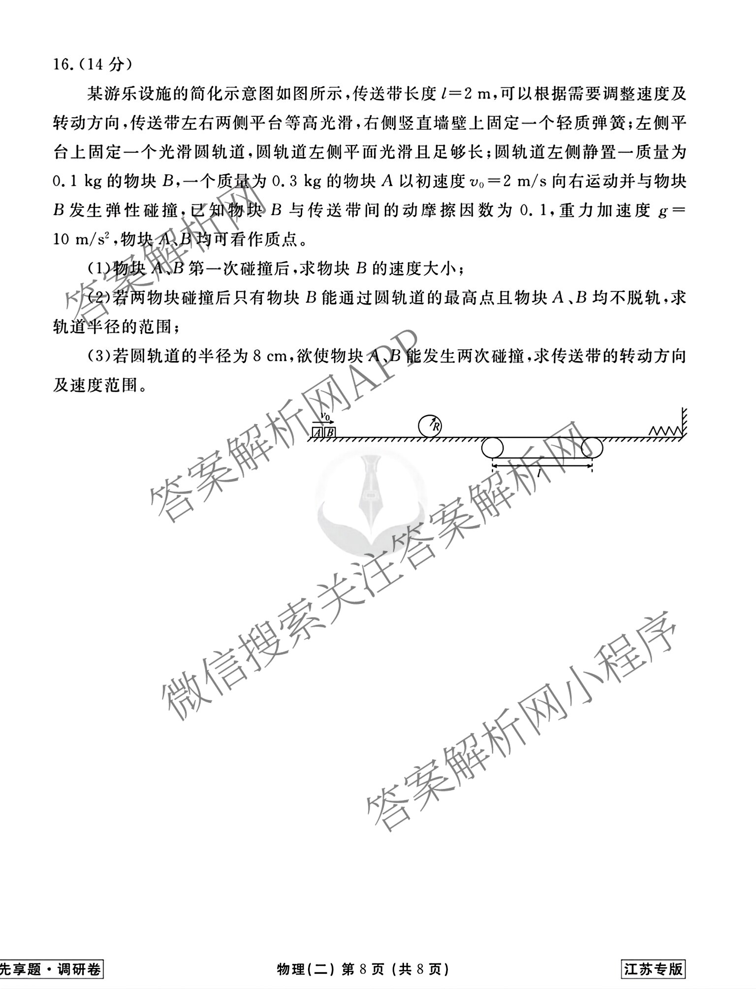 衡水金卷先享题·调研卷 2024年普通高中学业水平选择性考试模拟试题(二)2物理(江苏专版)试题,目前衡水金卷先享题答案网已经汇总了衡水金卷先享题·调研卷 2024年普通高中学业水平选择性考试模拟试题(二)2物理(江苏专版)试题的各科答案和试卷,获取更多衡水金卷先享题答案解析,请在关注本站。