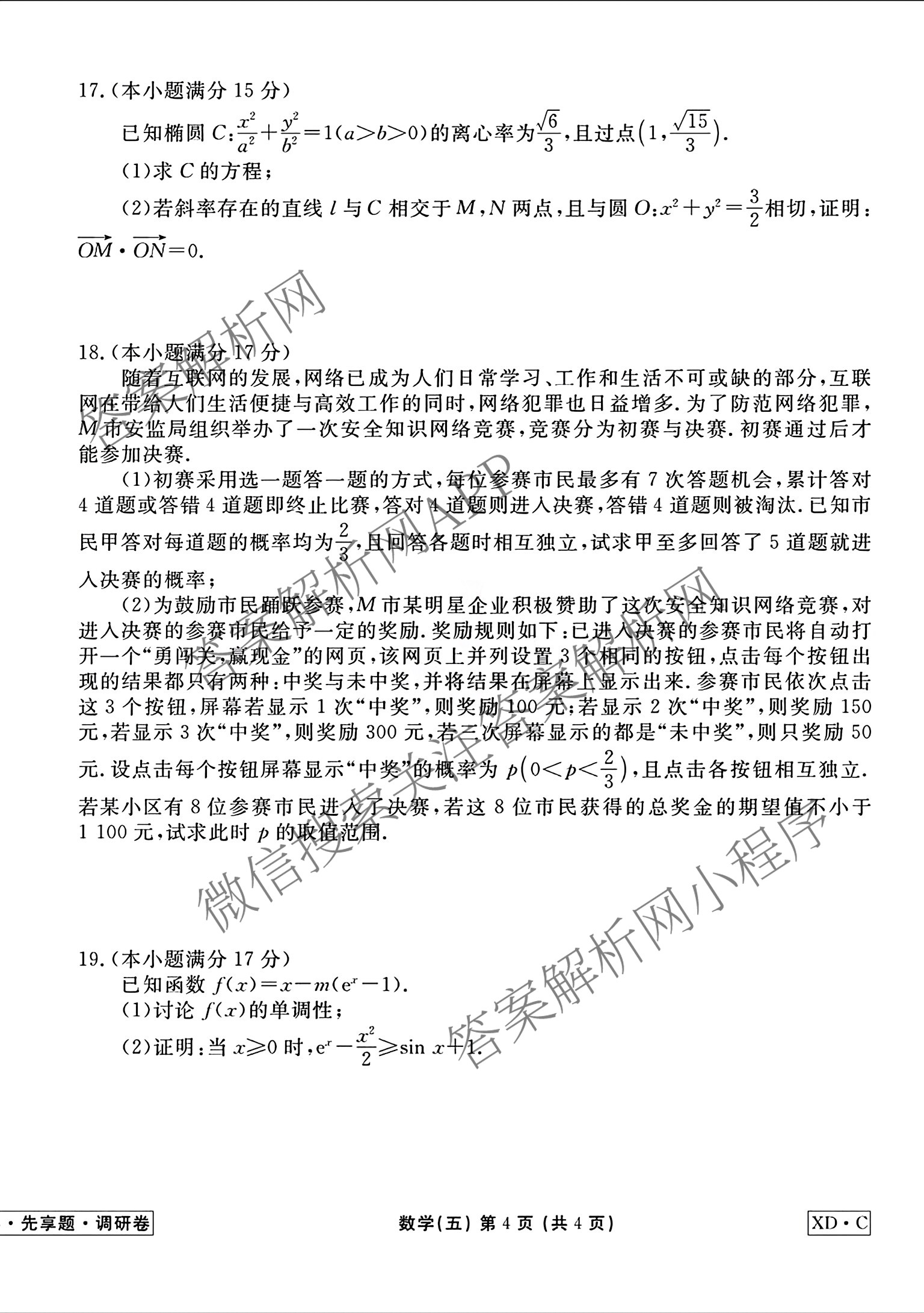 衡水金卷先享题·调研卷2024年普通高等学校招生全国统一考试模拟试题(五)5数学(XD·C)试题,目前衡水金卷先享题答案网已经汇总了衡水金卷先享题·调研卷2024年普通高等学校招生全国统一考试模拟试题(五)5数学(XD·C)试题的各科答案和试卷,获取更多衡水金卷先享题答案解析,请在关注本站。