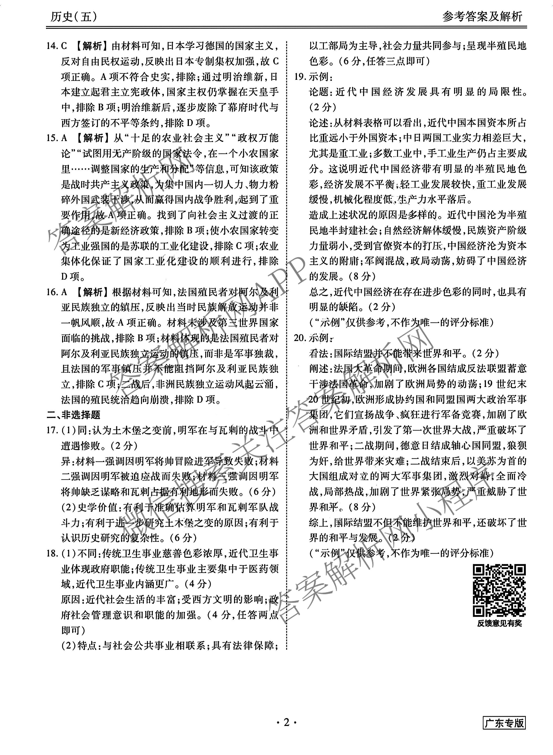 [高三](衡水金卷先享题)·调研卷 2024年普通高中学业水平选择性考试模拟试题(五)5历史(广东专版)答案