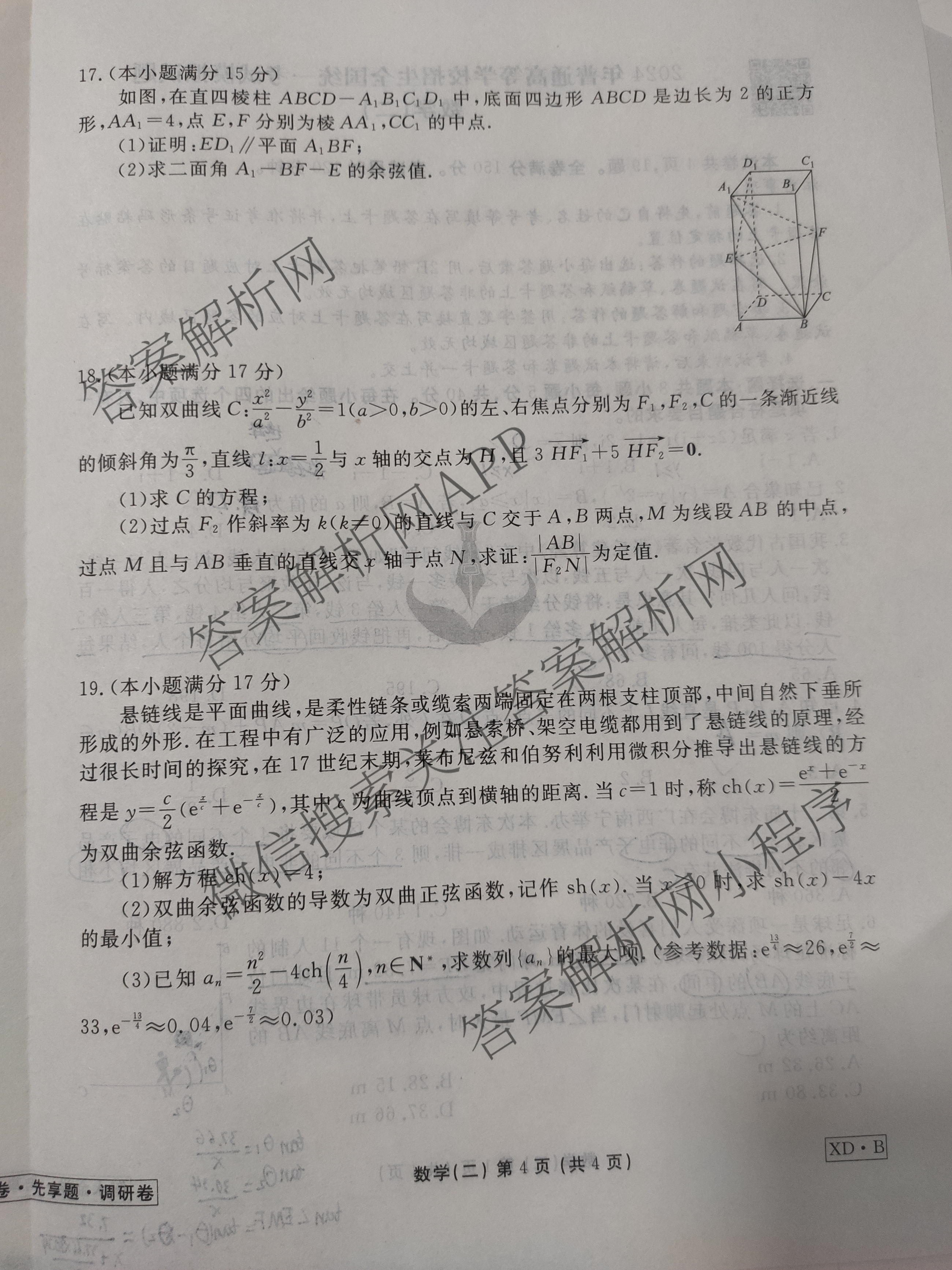衡水金卷先享题·调研卷2024年普通高等学校招生全国统一考试模拟试题(二)数学(XD·B)试题,目前衡水金卷先享题答案网已经汇总了衡水金卷先享题·调研卷2024年普通高等学校招生全国统一考试模拟试题(二)数学(XD·B)试题的各科答案和试卷,获取更多衡水金卷先享题答案解析,请在关注本站。