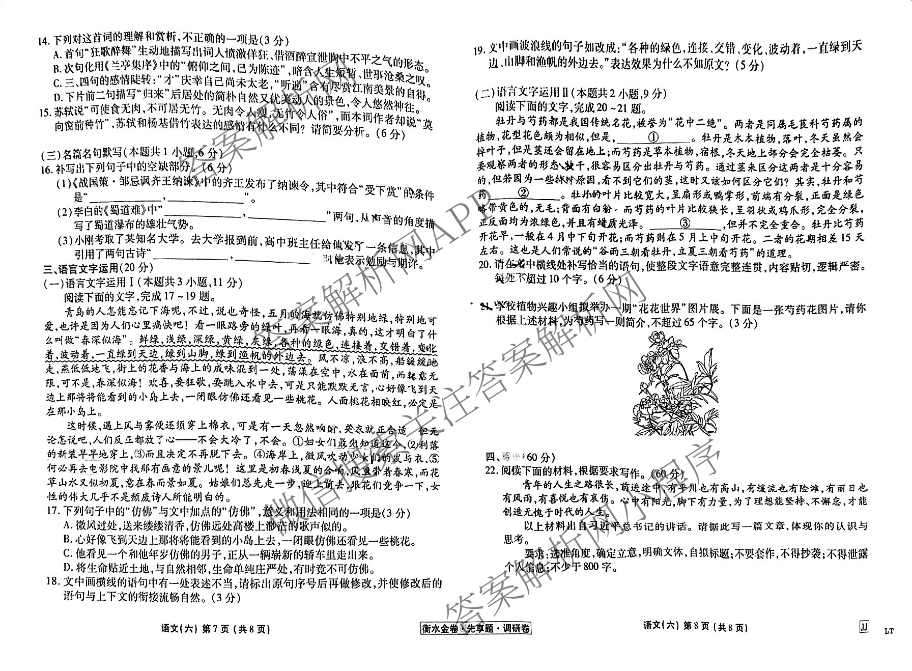 高三(衡水金卷先享题)·调研卷 2024年普通高等学校招生全国统一考试模拟试题(六)6语文(JJ)试题