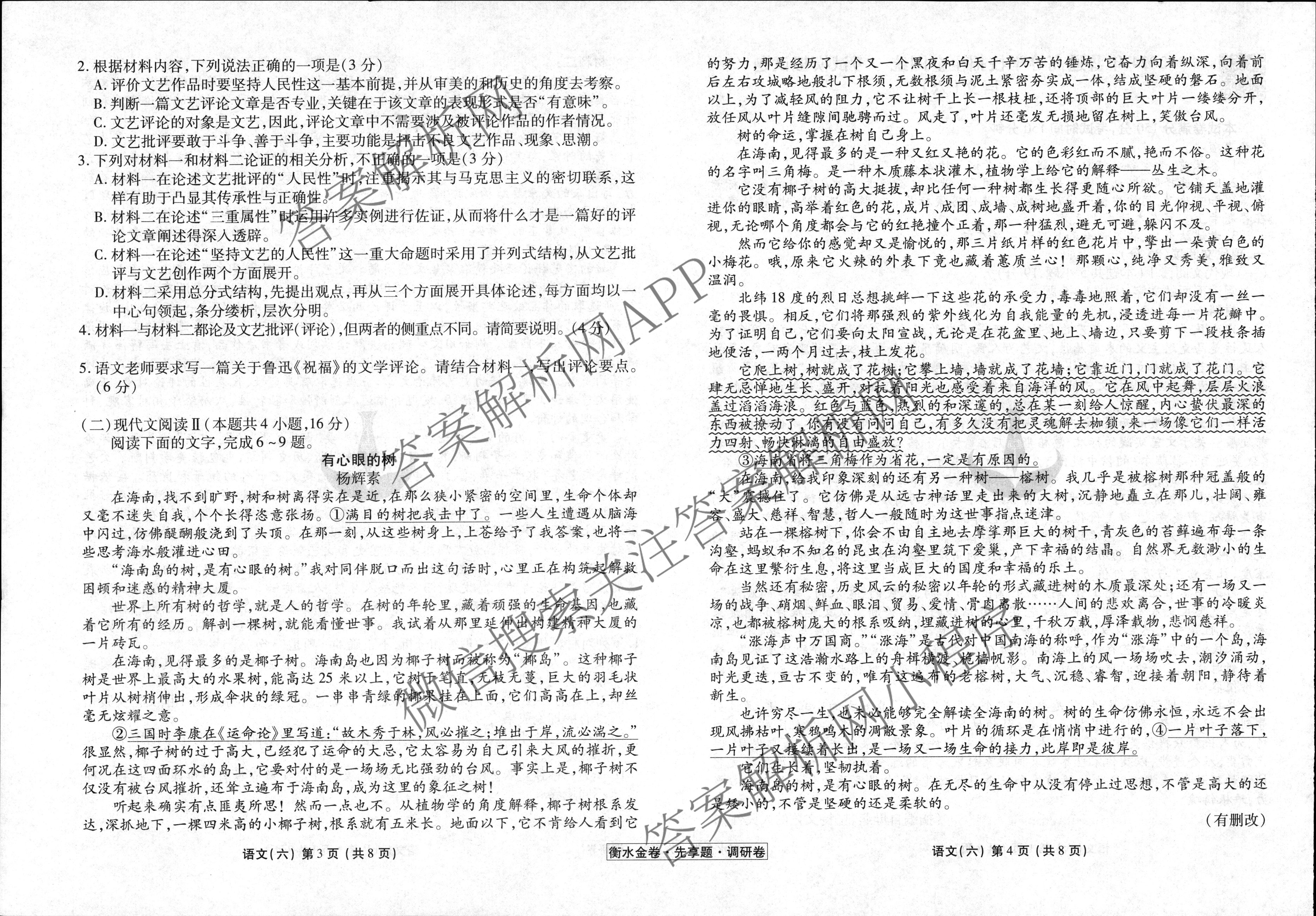 衡水金卷先享题·调研卷 2024年普通高等学校招生全国统一考试模拟试题(六)6语文(无脚标)试题,目前衡水金卷先享题答案网已经汇总了衡水金卷先享题·调研卷 2024年普通高等学校招生全国统一考试模拟试题(六)6语文(无脚标)试题的各科答案和试卷,获取更多衡水金卷先享题答案解析,请在关注本站。
