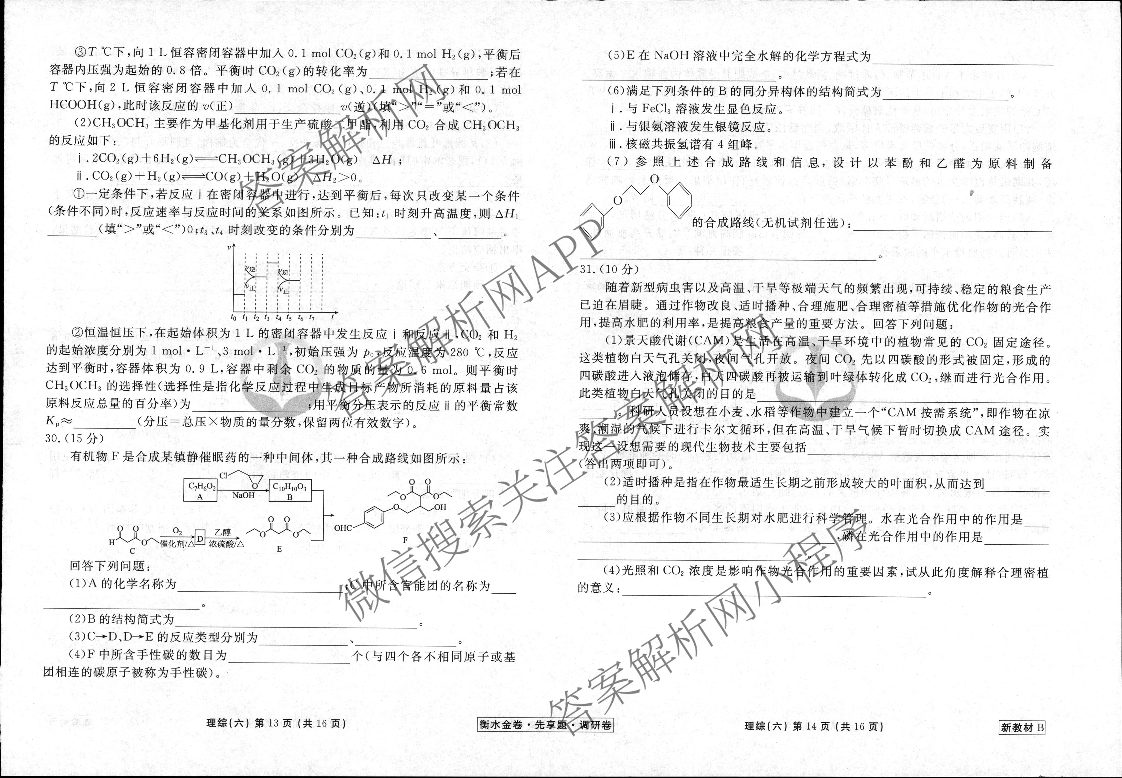 衡水金卷先享题·调研卷 2024年普通高等学校招生全国统一考试模拟试题(五)5理综(新教材B)试题,目前衡水金卷先享题答案网已经汇总了衡水金卷先享题·调研卷 2024年普通高等学校招生全国统一考试模拟试题(五)5理综(新教材B)试题的各科答案和试卷,获取更多衡水金卷先享题答案解析,请在关注本站。