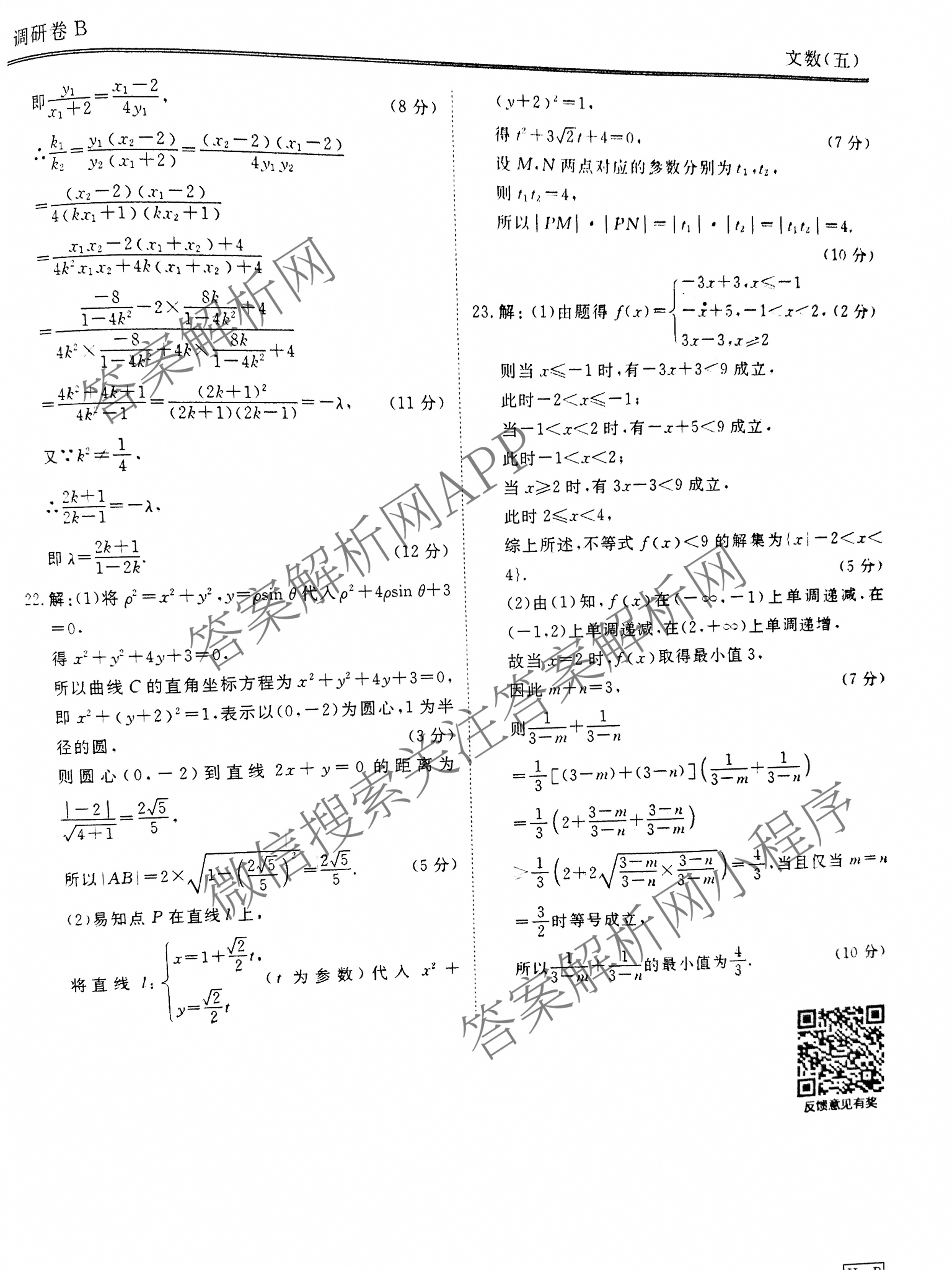 [衡水金卷先享题]调研卷 2024年普通高等学校招生全国统一考试模拟试题(五)5文数(JJB)答案