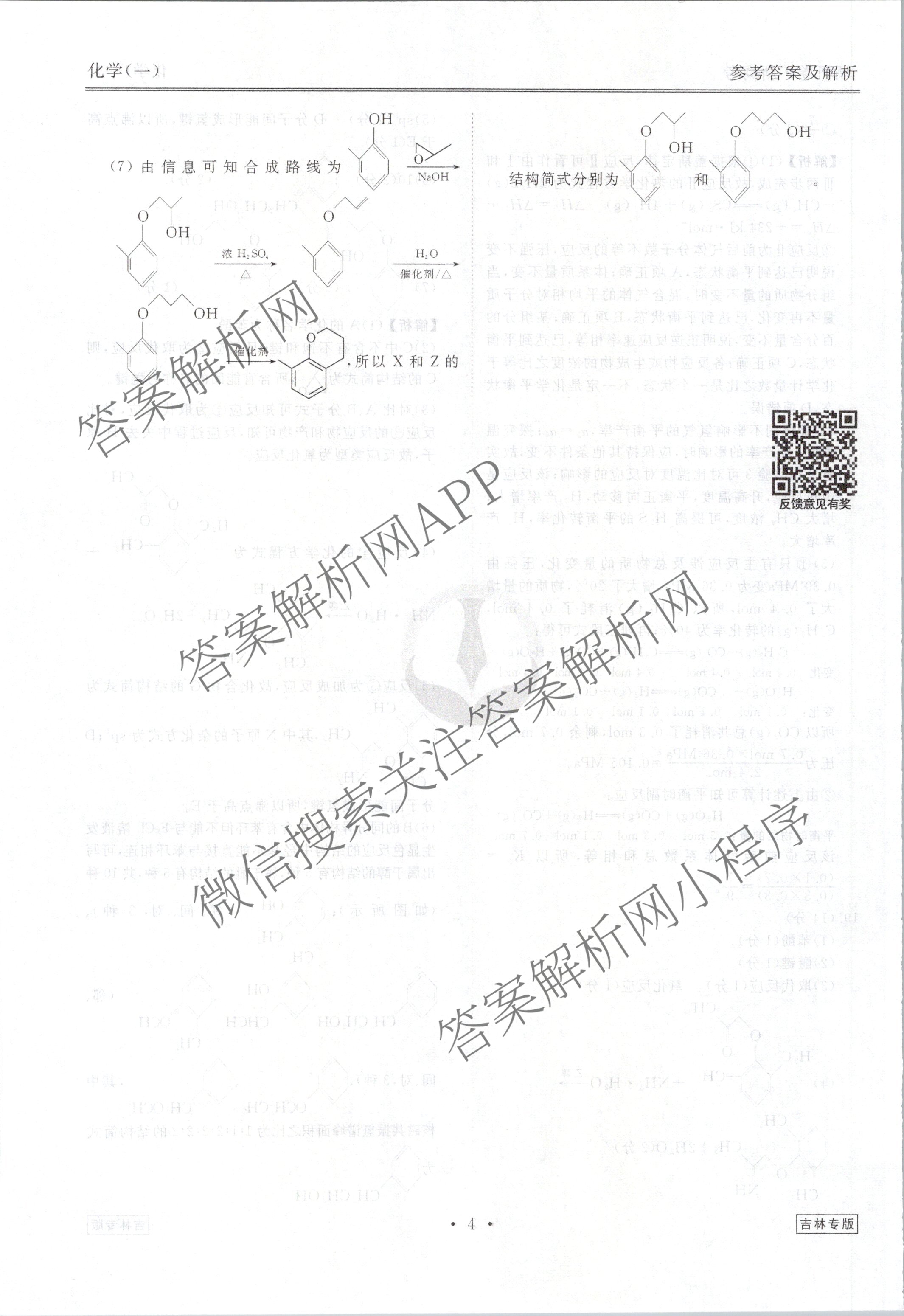 - 高三[衡水金卷先享题]·调研卷 2024年普通高中学业水平选择性考试模拟试题(一)1化学(吉林专版)答案