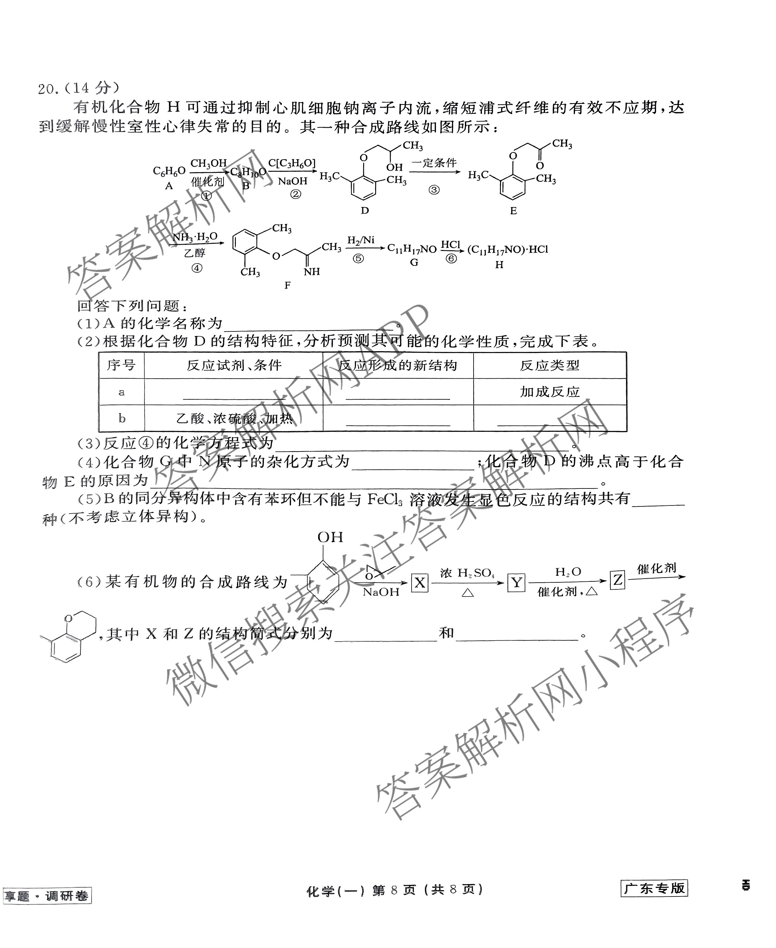 - 衡水金卷先享题调研卷2024年普通高中学业水平选择性考试模拟试题(一)1化学(广东专版)答案