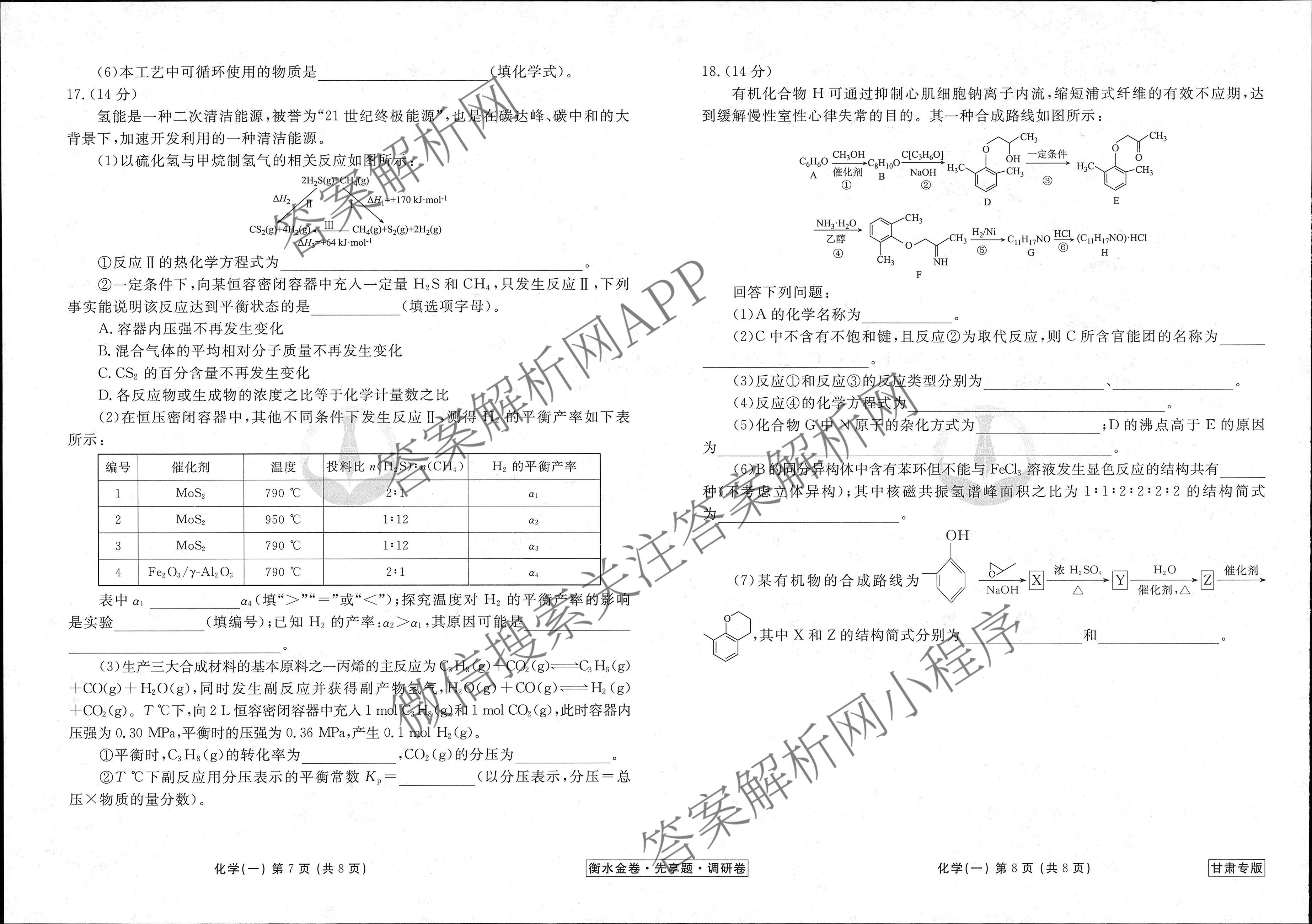 衡水金卷先享题·调研卷 2024年普通高中学业水平选择性考试模拟试题(一)1化学(甘肃专版)试题,目前衡水金卷先享题答案网已经汇总了衡水金卷先享题·调研卷 2024年普通高中学业水平选择性考试模拟试题(一)1化学(甘肃专版)试题的各科答案和试卷,获取更多衡水金卷先享题答案解析,请在关注本站。