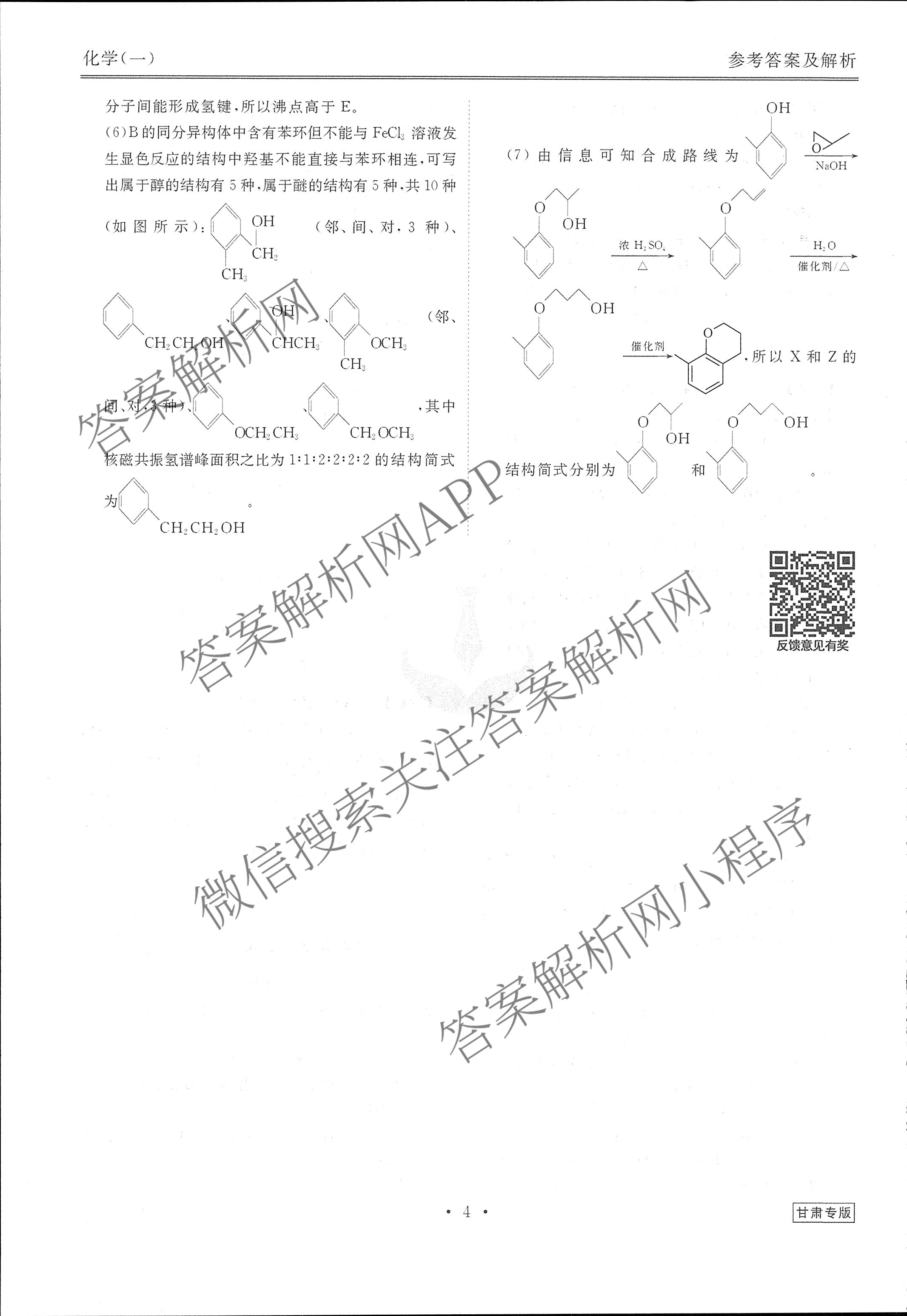 - [衡水金卷先享题]调研卷 2024年普通高中学业水平选择性考试模拟试题(一)1化学(甘肃专版)答案