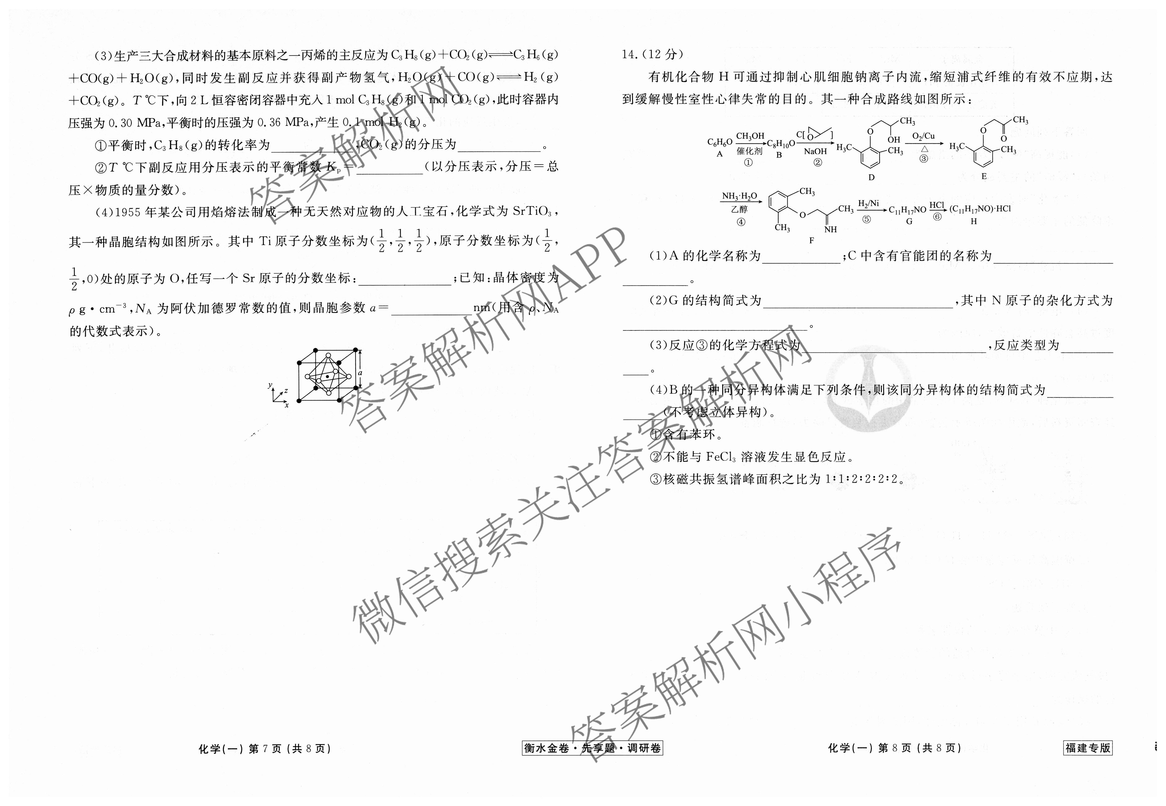 - (高三)(衡水金卷先享题)·调研卷 2024年普通高中学业水平选择性考试模拟试题(一)1化学(福建专版)答案