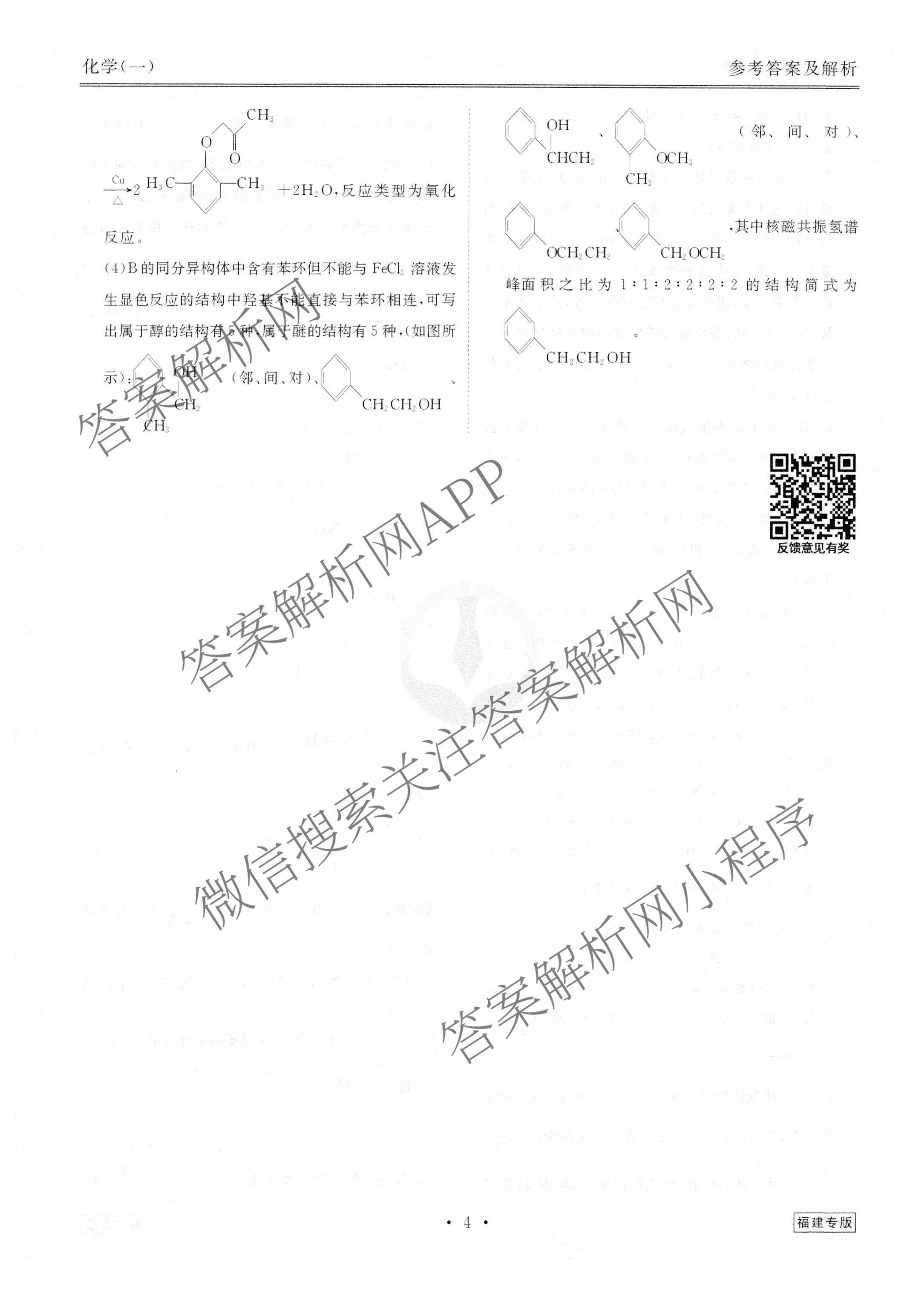 - (高三)(衡水金卷先享题)·调研卷 2024年普通高中学业水平选择性考试模拟试题(一)1化学(福建专版)答案