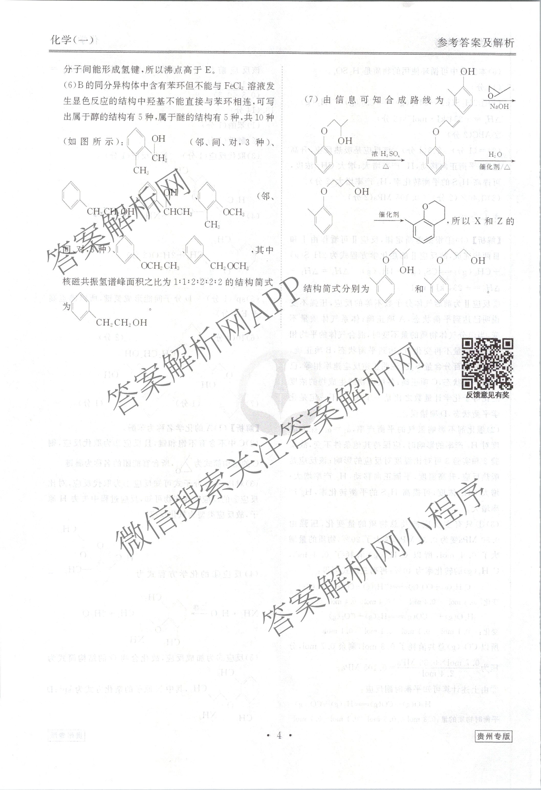 (高三)衡水金卷先享题调研卷 2024年普通高中学业水平选择性考试模拟试题(一)1化学(贵州专版)答案