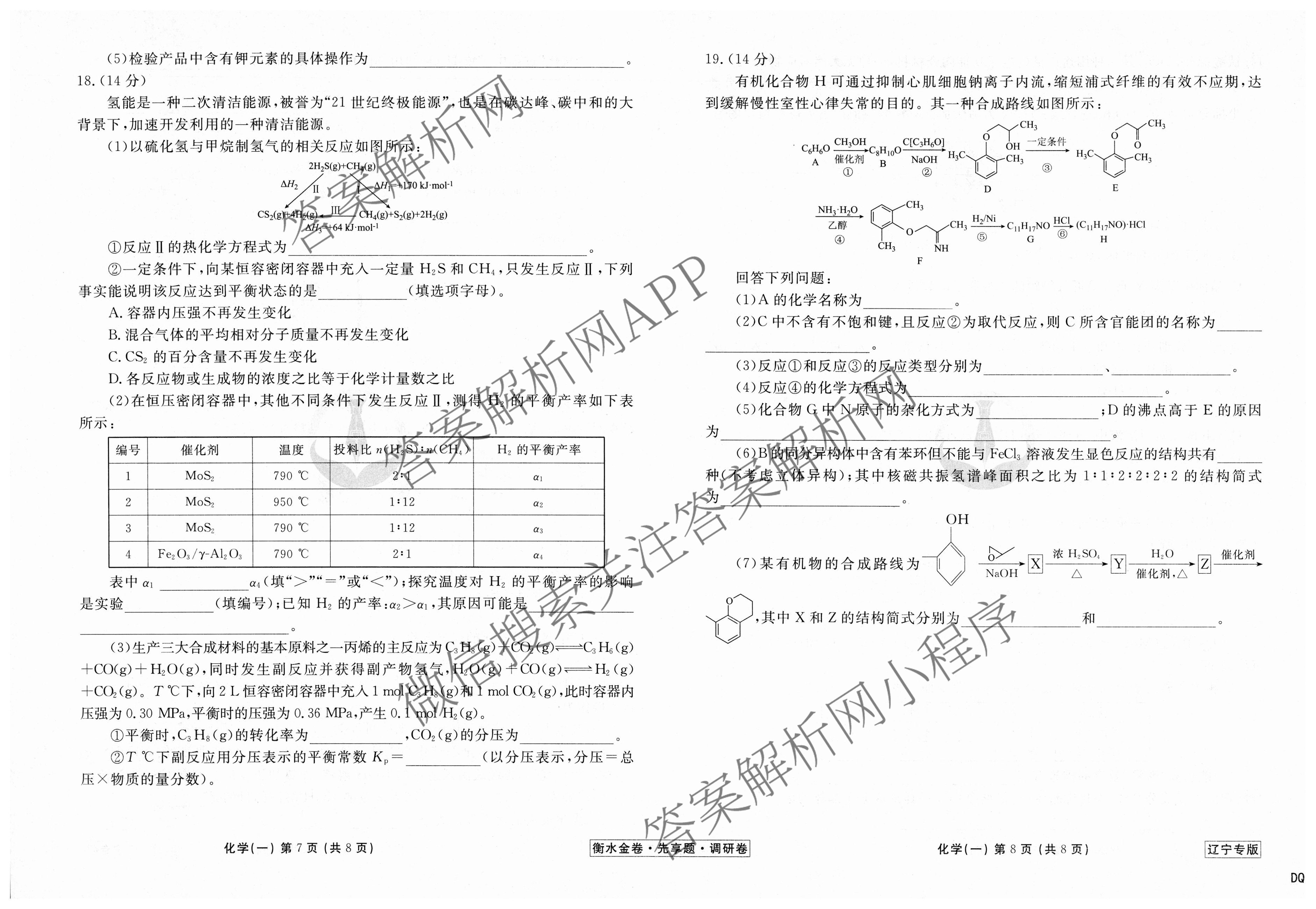 - (高三)(衡水金卷先享题)·调研卷 2024年普通高中学业水平选择性考试模拟试题(一)1化学(辽宁专版)答案