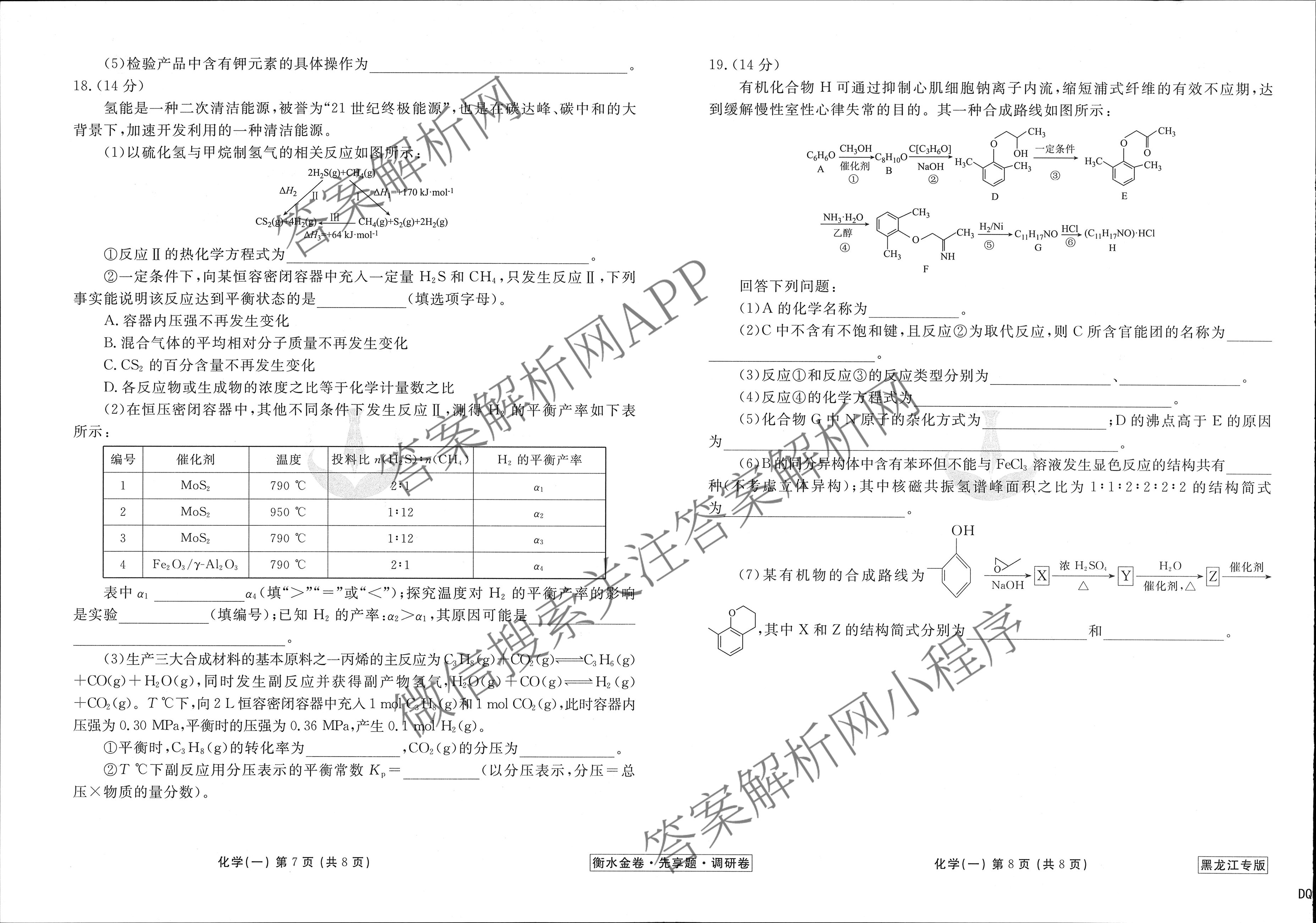 - [高三]衡水金卷先享题调研卷 2024年普通高中学业水平选择性考试模拟试题(一)1化学(山东专版)答案