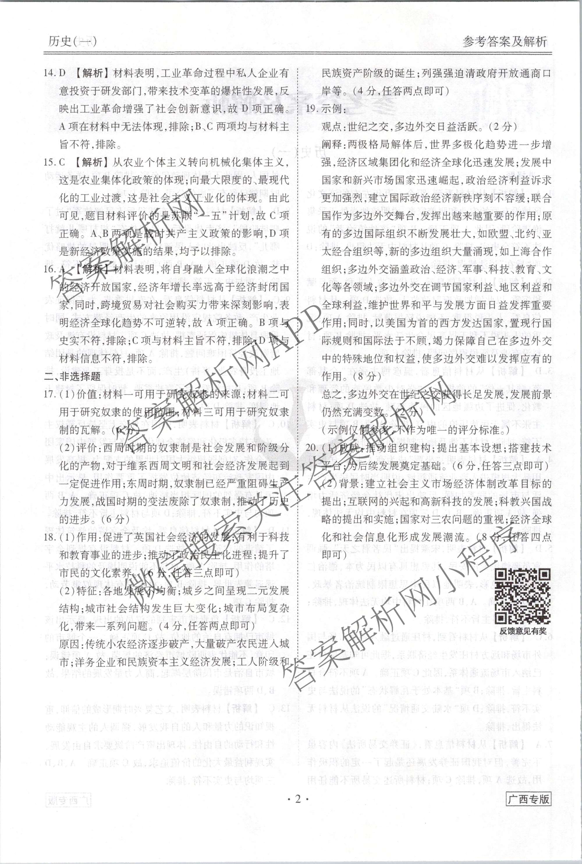 (高三)衡水金卷先享题调研卷 2024年普通高中学业水平选择性考试模拟试题(一)1历史(广西专版)答案