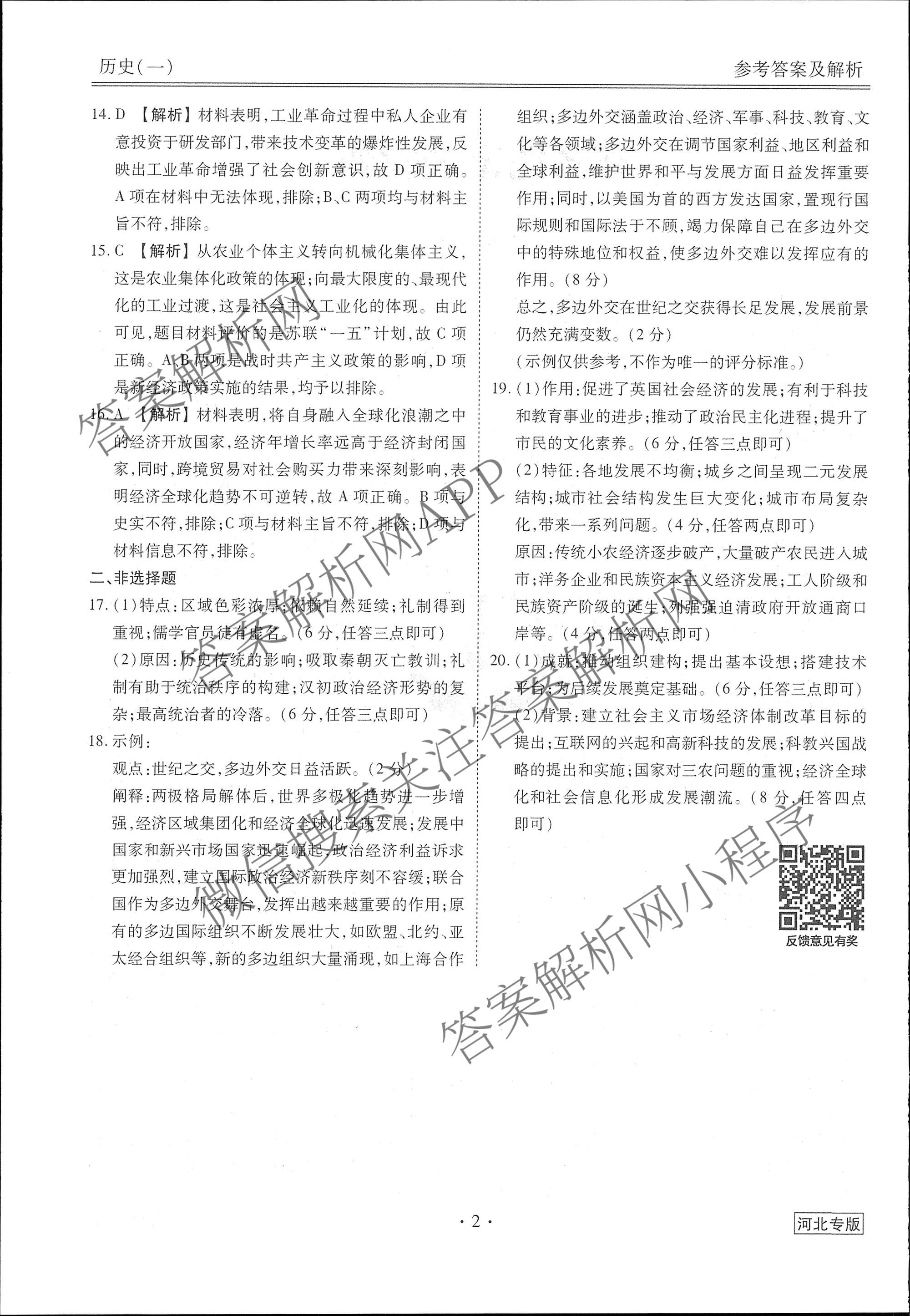 - (高三)(衡水金卷先享题)调研卷 2024年普通高中学业水平选择性考试模拟试题(一)1历史(河北专版)答案