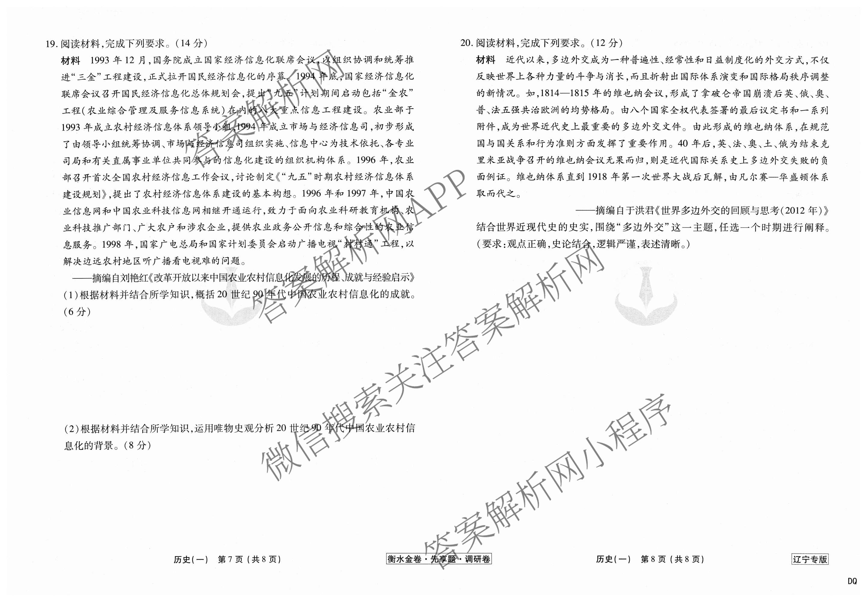 衡水金卷先享题·调研卷 2024年普通高中学业水平选择性考试模拟试题(一)1历史(辽宁专版)试题,目前衡水金卷先享题答案网已经汇总了衡水金卷先享题·调研卷 2024年普通高中学业水平选择性考试模拟试题(一)1历史(辽宁专版)试题的各科答案和试卷,获取更多衡水金卷先享题答案解析,请在关注本站。