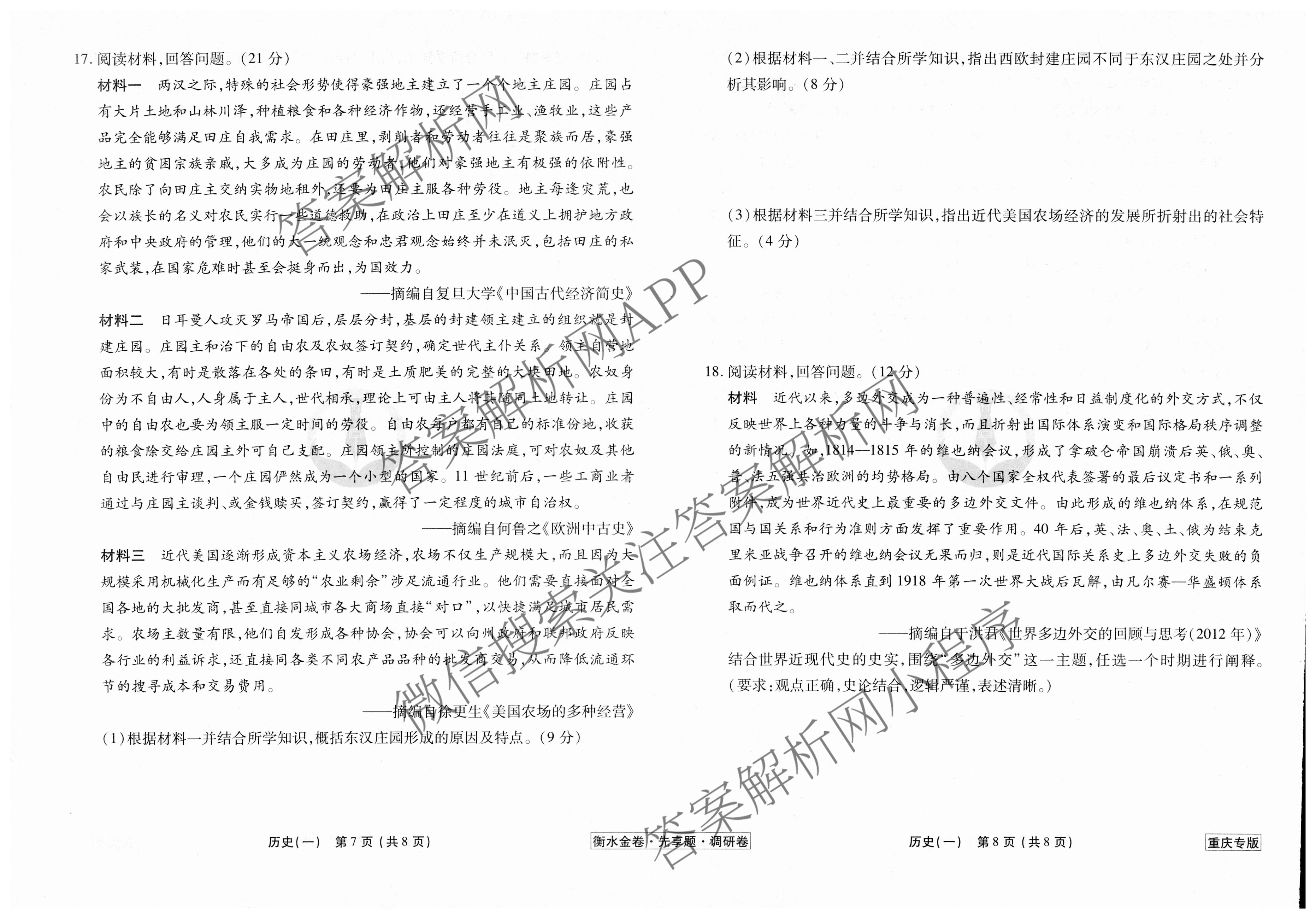 衡水金卷先享题·调研卷 2024年普通高中学业水平选择性考试模拟试题(一)1历史(重庆专版)试题,目前衡水金卷先享题答案网已经汇总了衡水金卷先享题·调研卷 2024年普通高中学业水平选择性考试模拟试题(一)1历史(重庆专版)试题的各科答案和试卷,获取更多衡水金卷先享题答案解析,请在关注本站。