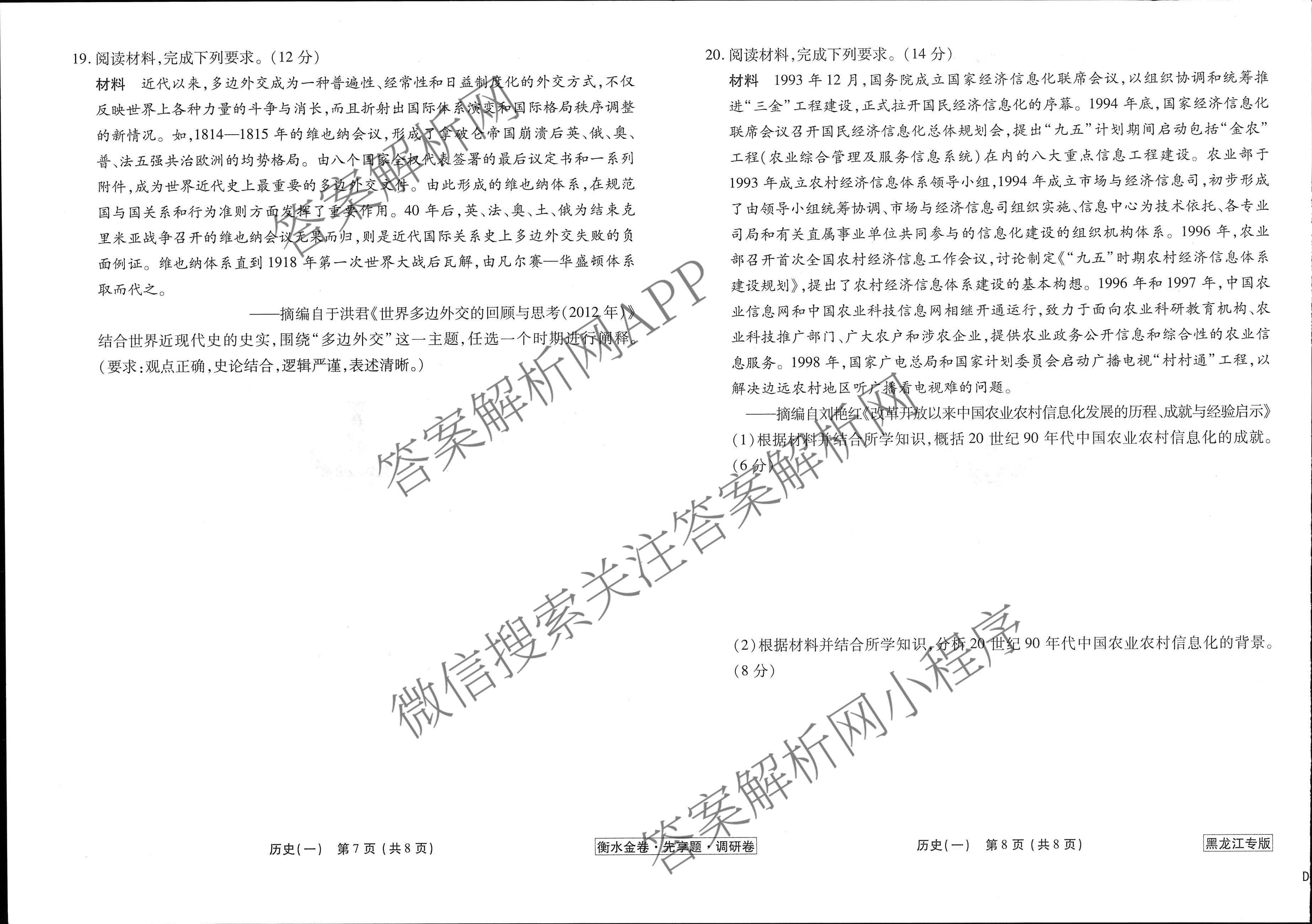 衡水金卷先享题·调研卷 2024年普通高中学业水平选择性考试模拟试题(一)1历史(黑龙江专版)试题,目前衡水金卷先享题答案网已经汇总了衡水金卷先享题·调研卷 2024年普通高中学业水平选择性考试模拟试题(一)1历史(黑龙江专版)试题的各科答案和试卷,获取更多衡水金卷先享题答案解析,请在关注本站。