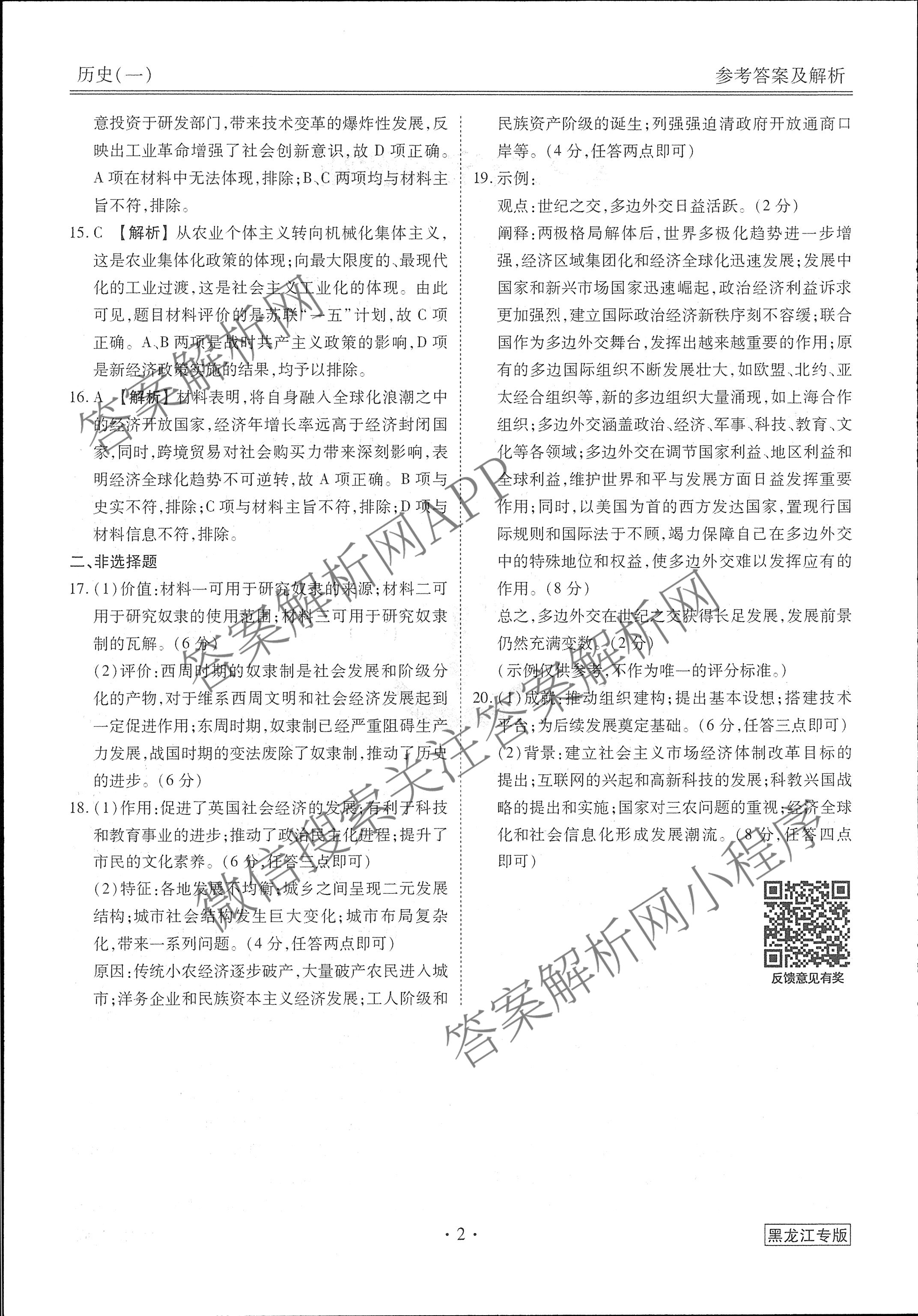 (高三)[衡水金卷先享题]·调研卷 2024年普通高中学业水平选择性考试模拟试题(一)1历史(黑龙江专版)答案