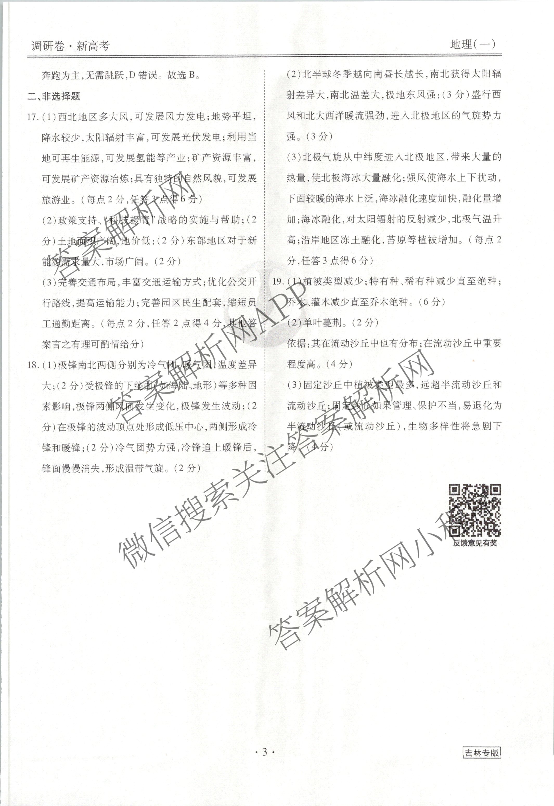 (高三)衡水金卷先享题·调研卷 2024年普通高中学业水平选择性考试模拟试题(一)1地理(吉林专版)答案