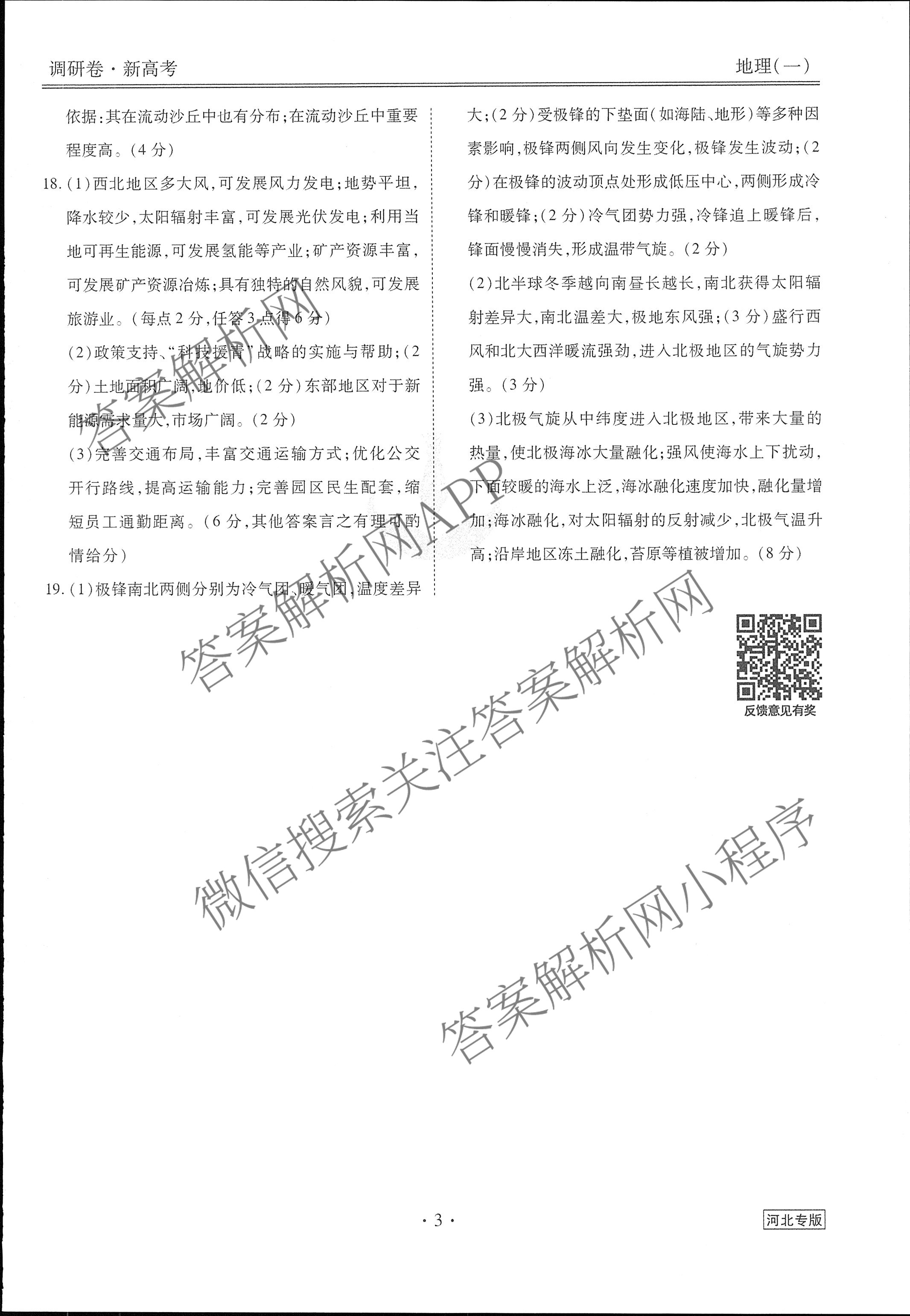 - [衡水金卷先享题]·调研卷 2024年普通高中学业水平选择性考试模拟试题(一)1地理(河北专版)答案