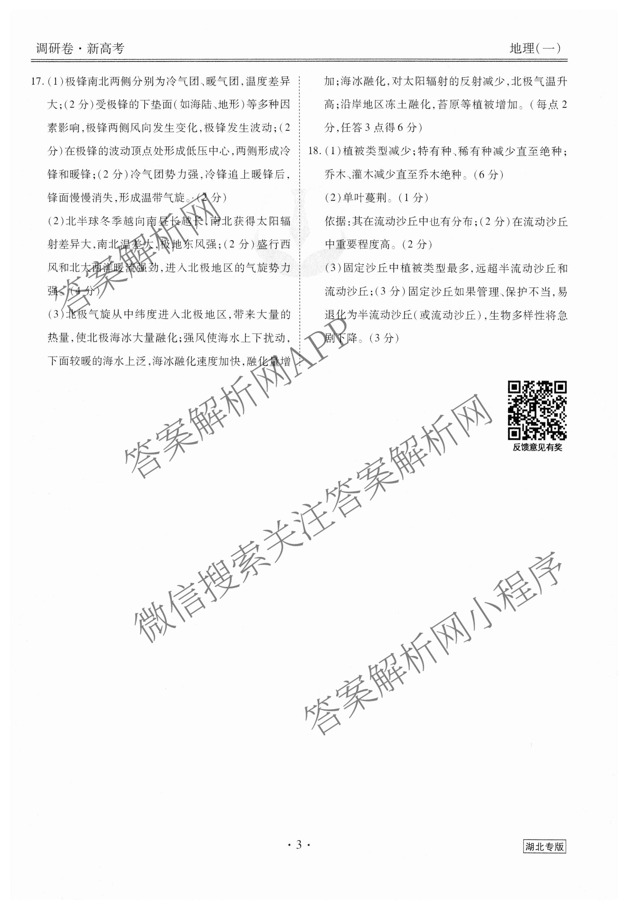(高三)[衡水金卷先享题]·调研卷 2024年普通高中学业水平选择性考试模拟试题(一)1地理(湖北专版)答案