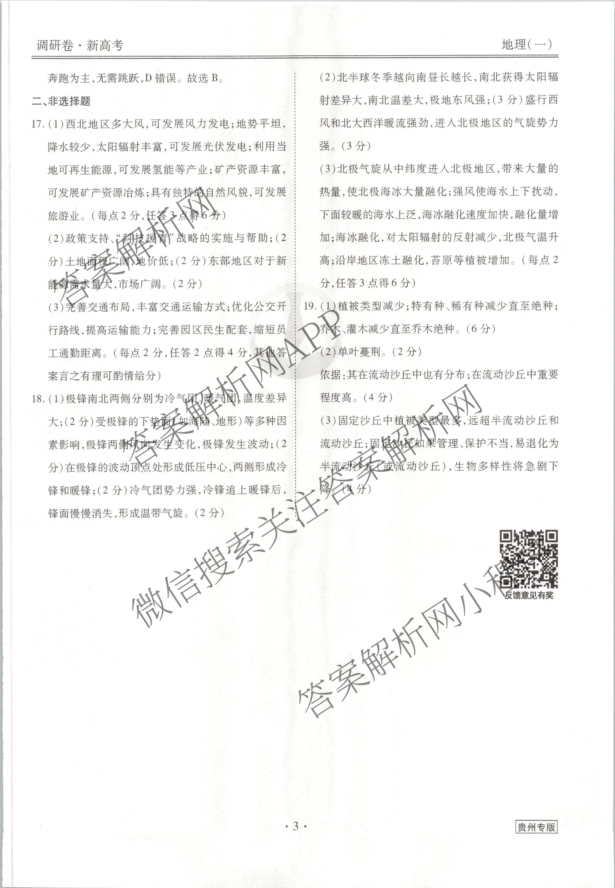 (衡水金卷先享题)·调研卷 2024年普通高中学业水平选择性考试模拟试题(一)1地理(贵州专版)答案