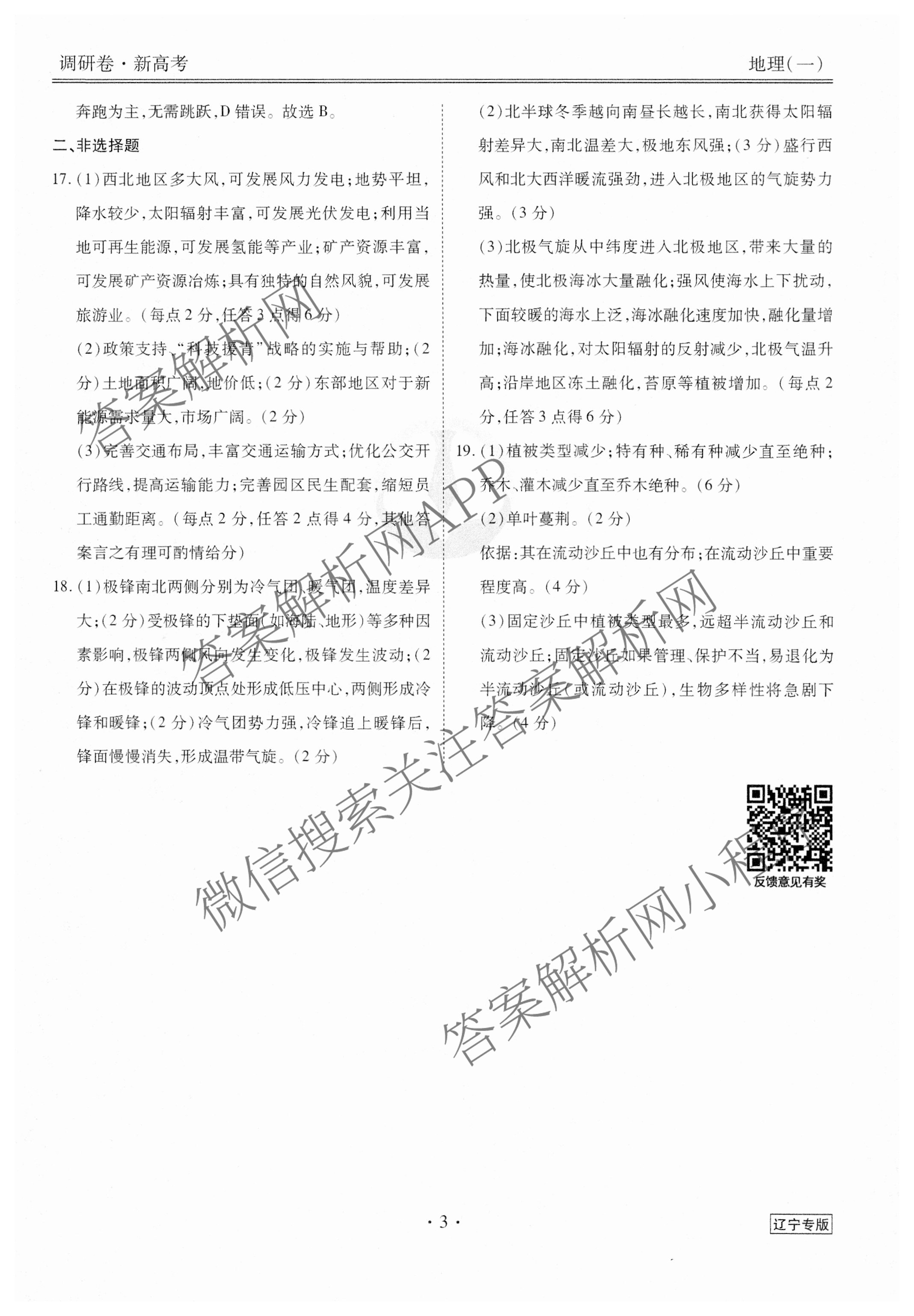 (衡水金卷先享题)调研卷 2024年普通高中学业水平选择性考试模拟试题(一)1地理(辽宁专版)答案