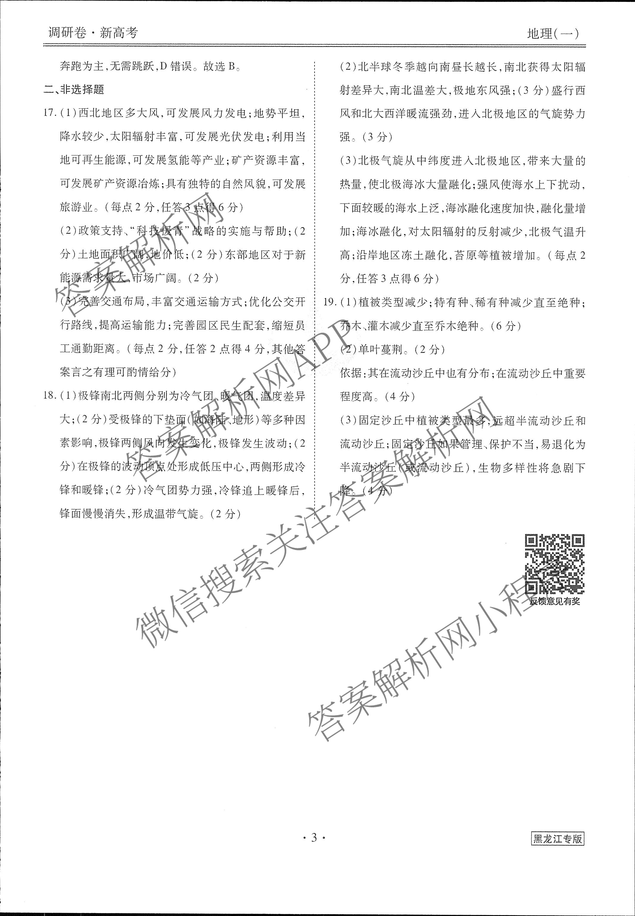 (衡水金卷先享题)调研卷 2024年普通高中学业水平选择性考试模拟试题(一)1地理(黑龙江专版)答案