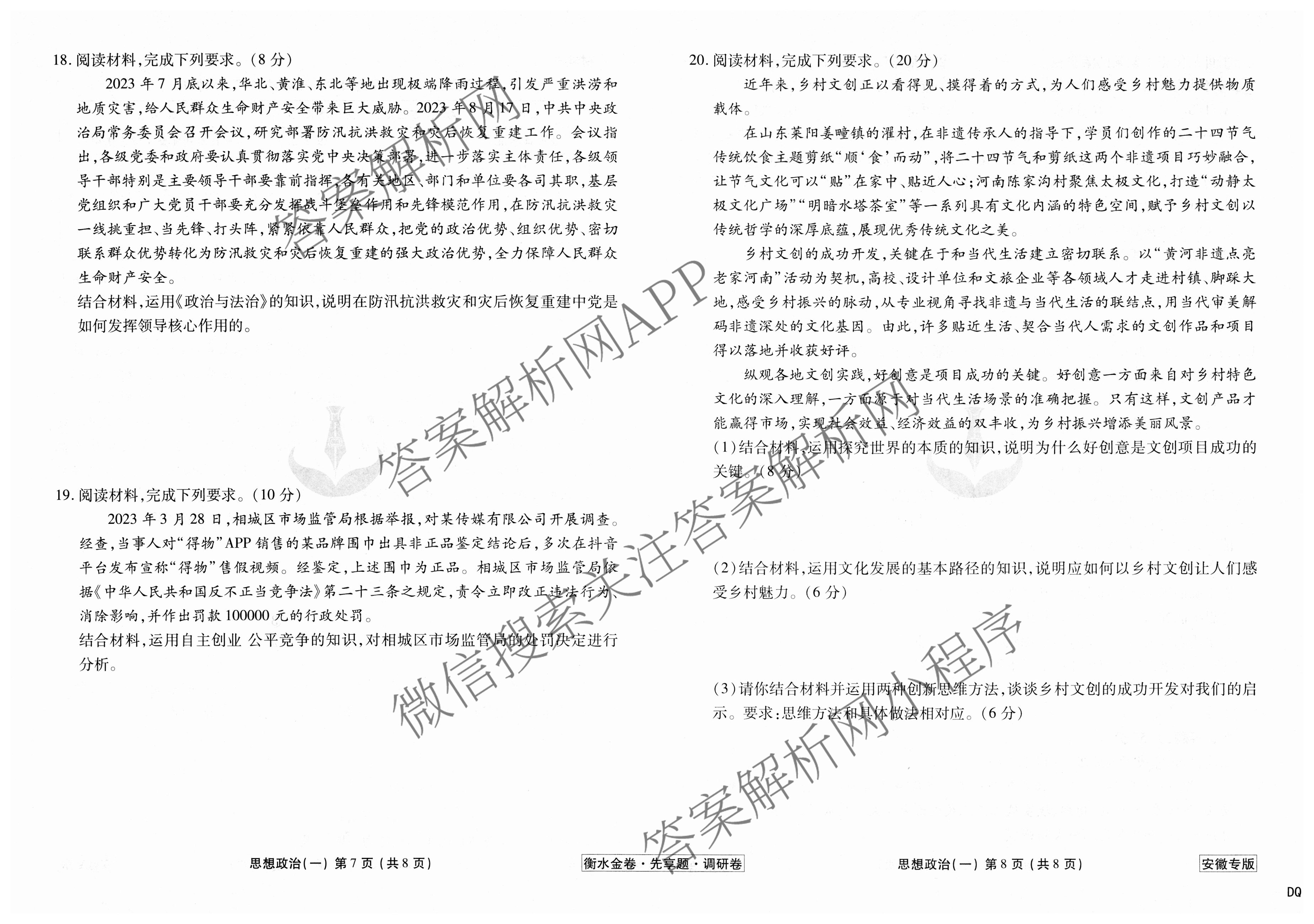 衡水金卷先享题·调研卷 2024年普通高中学业水平选择性考试模拟试题(一)1政治(安徽专版)试题,目前衡水金卷先享题答案网已经汇总了衡水金卷先享题·调研卷 2024年普通高中学业水平选择性考试模拟试题(一)1政治(安徽专版)试题的各科答案和试卷,获取更多衡水金卷先享题答案解析,请在关注本站。