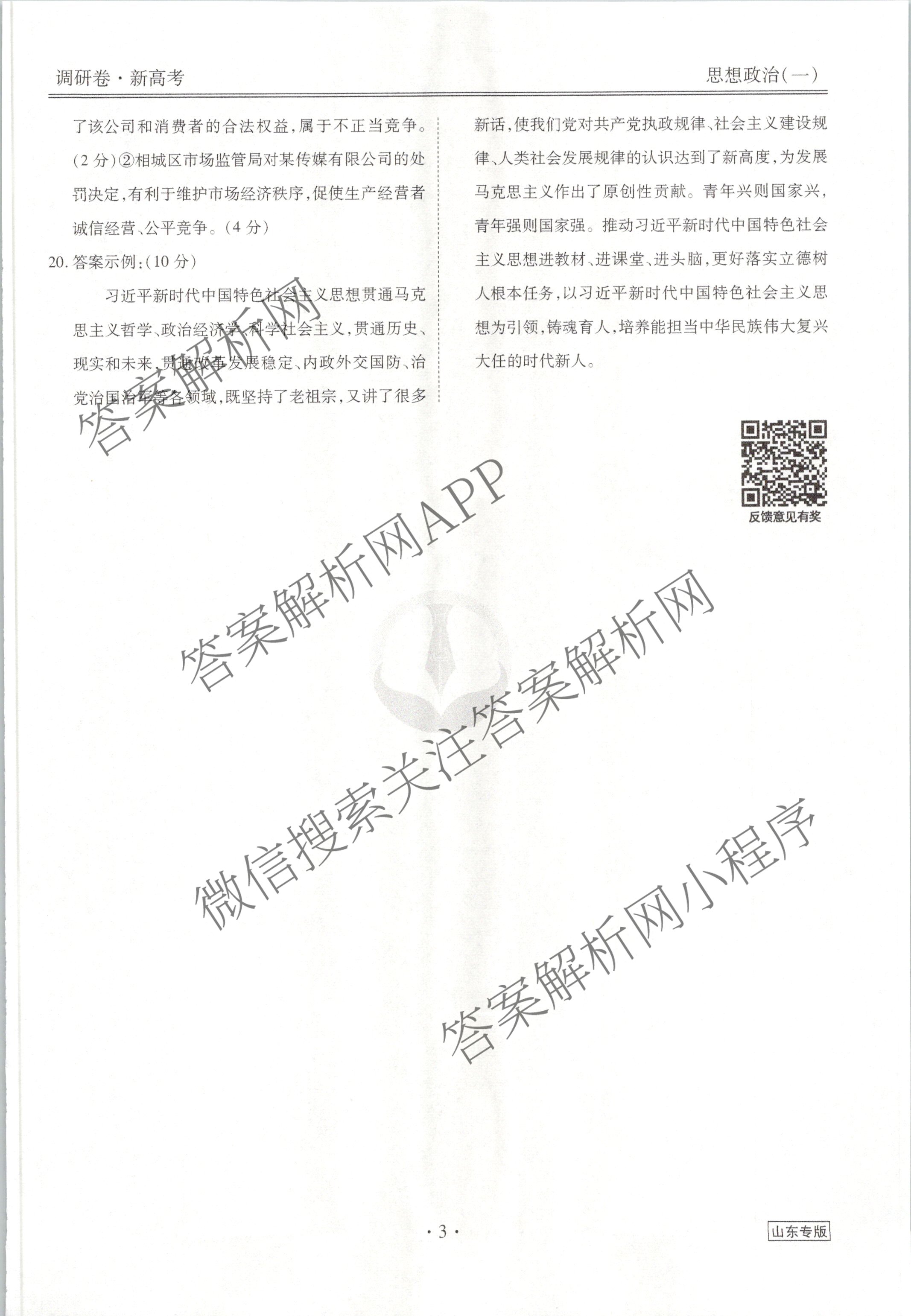 [衡水金卷先享题]调研卷 2024年普通高中学业水平选择性考试模拟试题(一)1政治(山东专版)答案