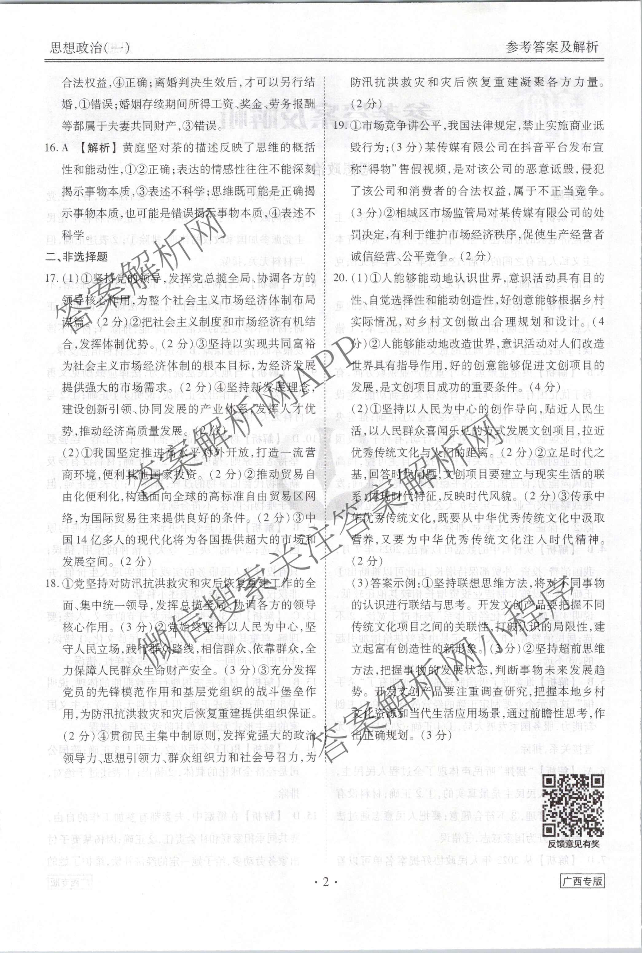 (高三)衡水金卷先享题·调研卷 2024年普通高中学业水平选择性考试模拟试题(一)1政治(广西专版)答案