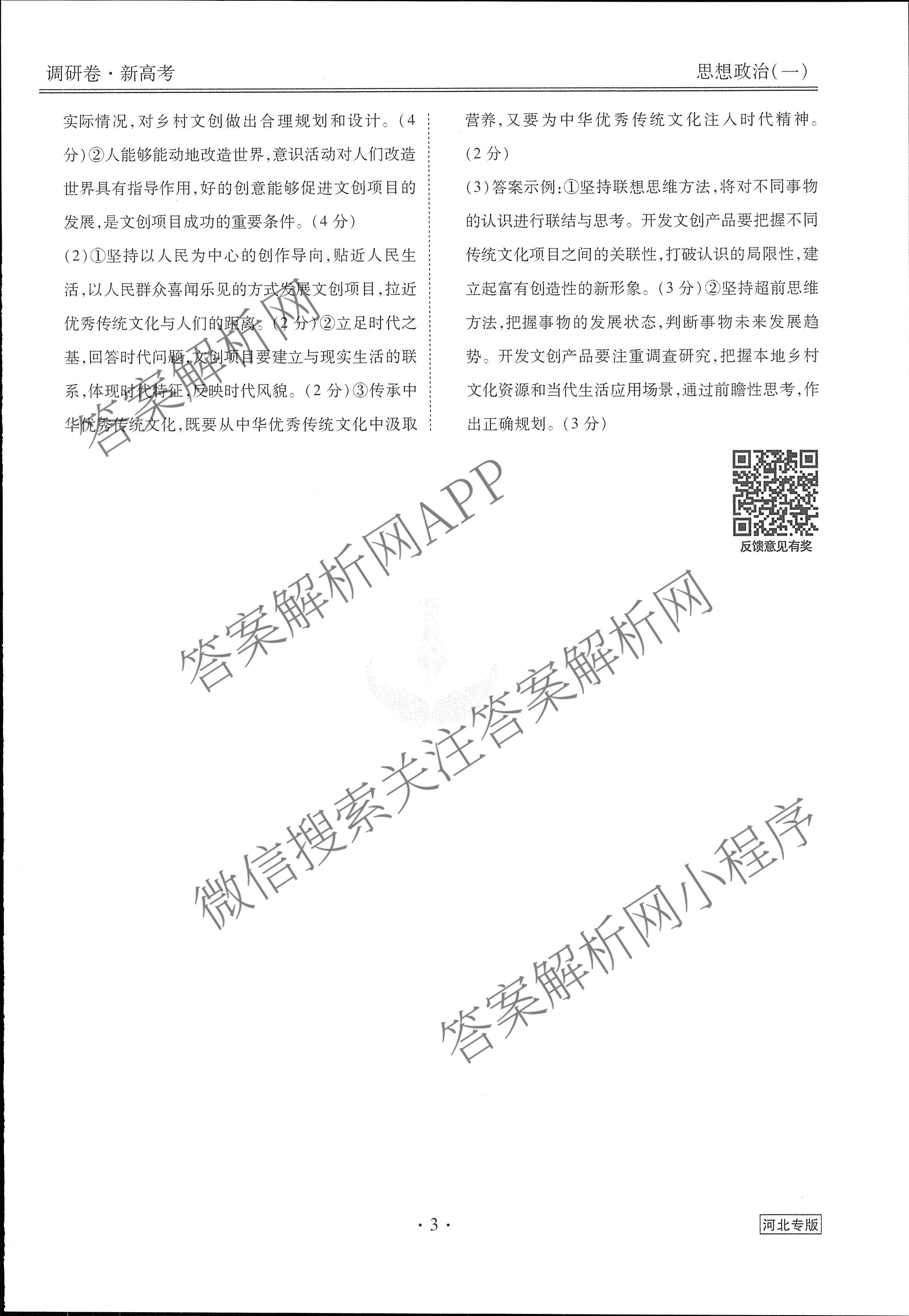 (高三)衡水金卷先享题调研卷 2024年普通高中学业水平选择性考试模拟试题(一)1政治(河北专版)答案
