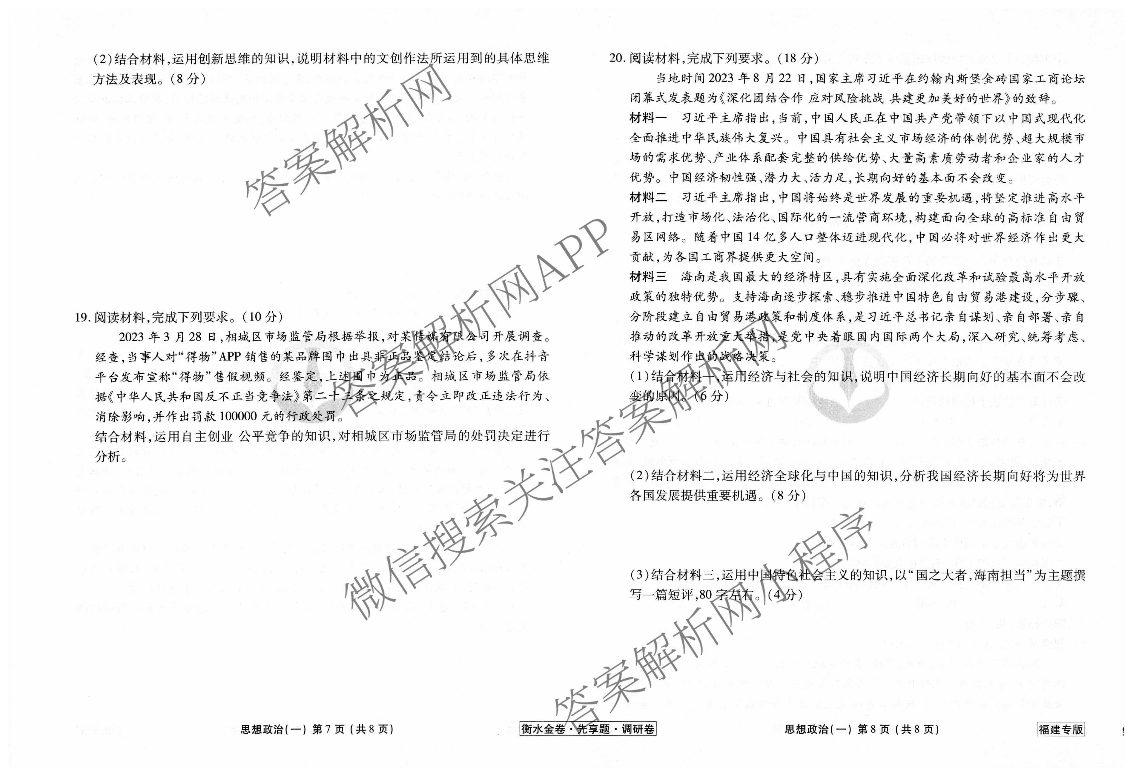 衡水金卷先享题·调研卷 2024年普通高中学业水平选择性考试模拟试题(一)1政治(福建专版)试题,目前衡水金卷先享题答案网已经汇总了衡水金卷先享题·调研卷 2024年普通高中学业水平选择性考试模拟试题(一)1政治(福建专版)试题的各科答案和试卷,获取更多衡水金卷先享题答案解析,请在关注本站。