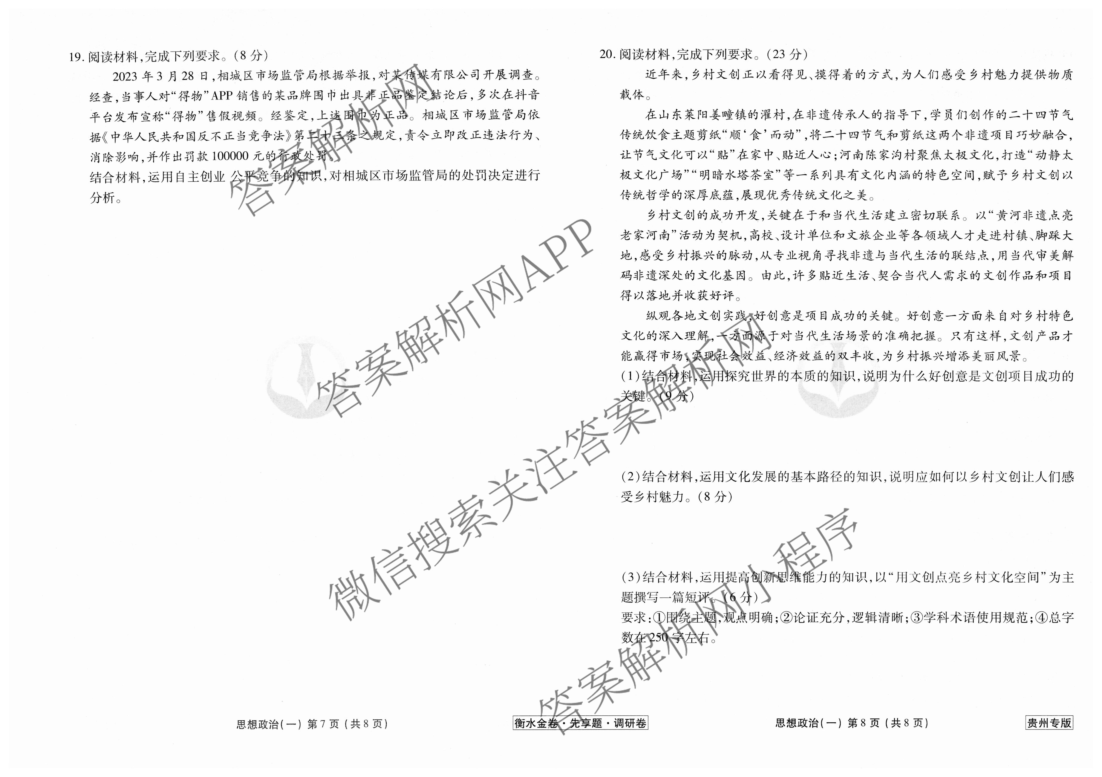 [衡水金卷先享题]调研卷 2024年普通高中学业水平选择性考试模拟试题(一)1政治(贵州专版)试题