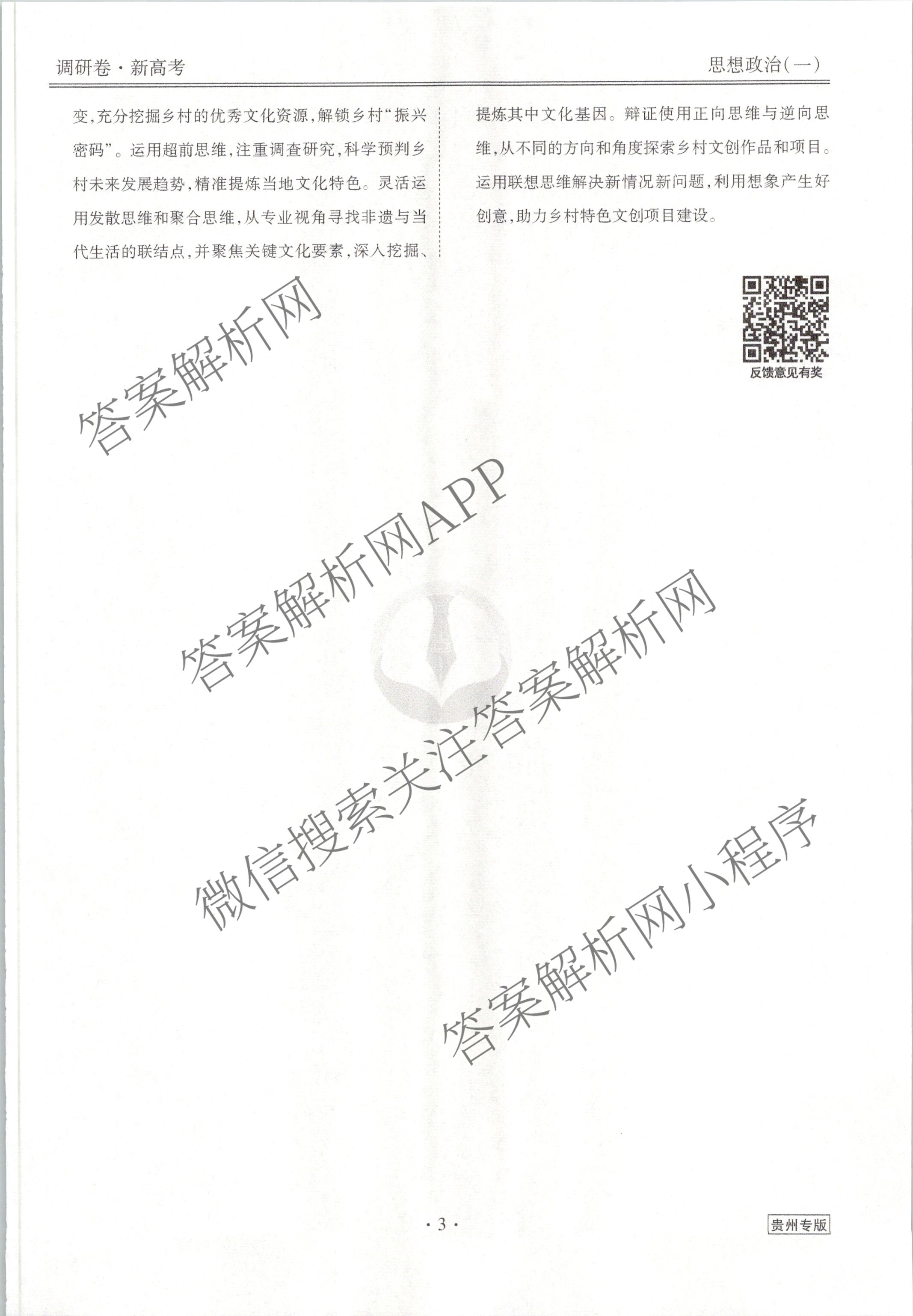 (高三)(衡水金卷先享题)·调研卷 2024年普通高中学业水平选择性考试模拟试题(一)1政治(贵州专版)答案
